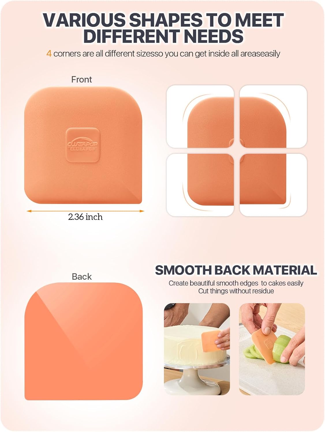 All-Round Cleaning : Stiff and sharp edges of these kitchen scrapers are able to scrap the food residue in your pan, pot, plate or other cookware without leaving scratches; designed with 4-size angles, the scraper tool kitchen to can flexibly reach corners and crannies to make a thorough cleaning