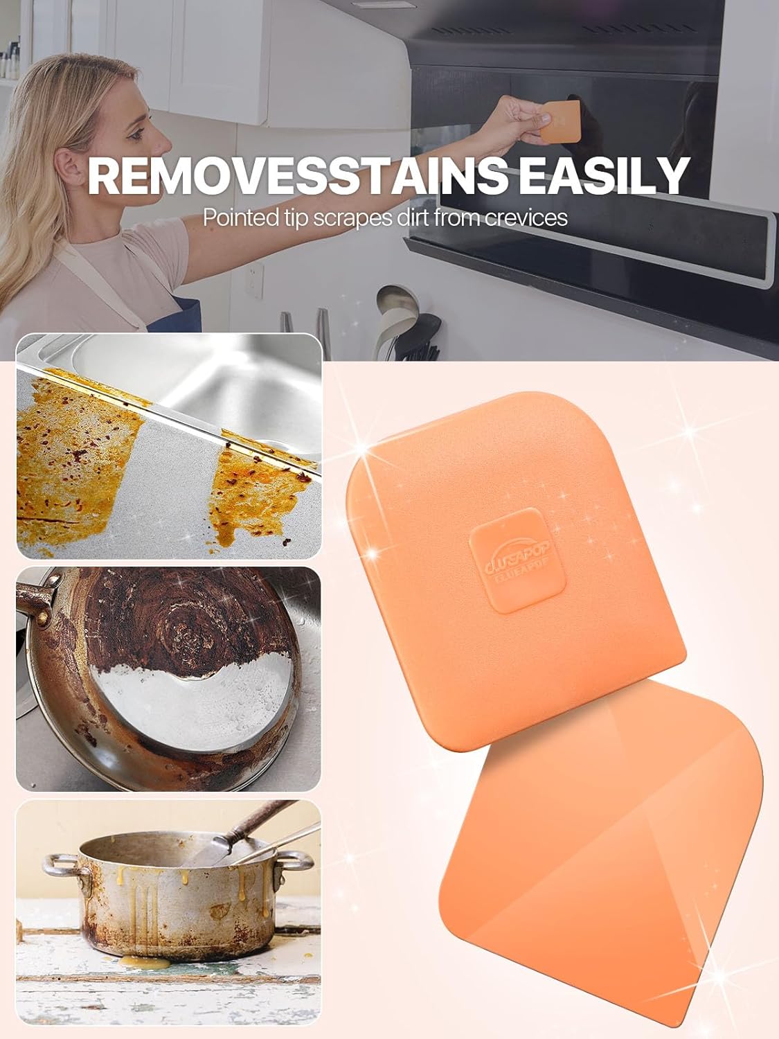 Multifunctional : With its sharp edges, these grill kitchen pan scrapers can be used as cutting dough, fruits, etc; it can also used to remove the various messy items in the wall, table, floor and etc.With this pot scraper non scratch, you can use it not only to clean the dirt on pans, tables, chairs and small crevices, but also to cut dough, cookies etc