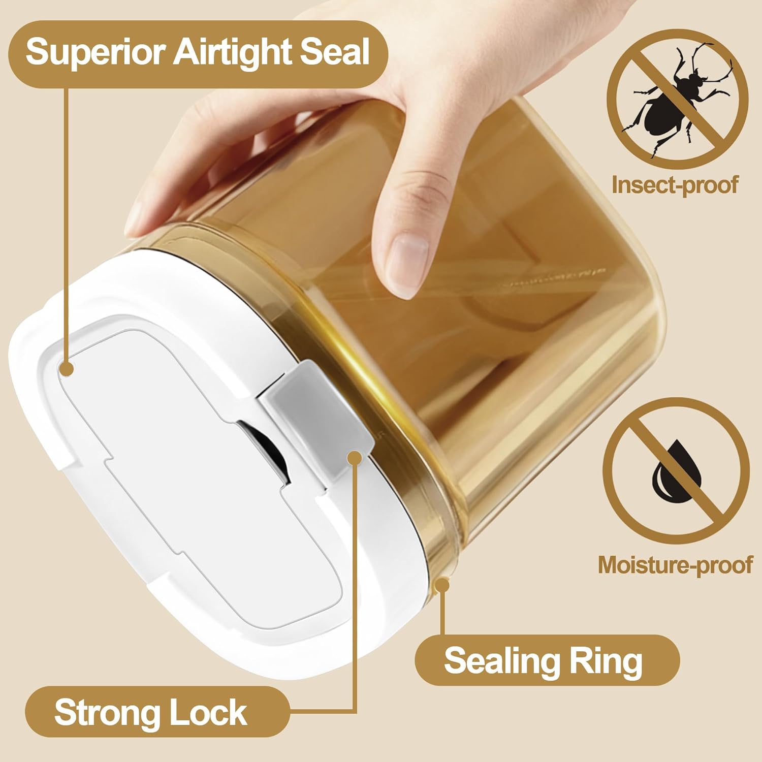 【Premium Food-Grade & Safe Material】 Crafted from high-quality AS material, these canisters are BPA-free, odorless, and non-toxic, prioritizing your health and safety. The dark brown light-blocking design helps protect contents from sunlight exposure, preserving freshness and flavor over time.