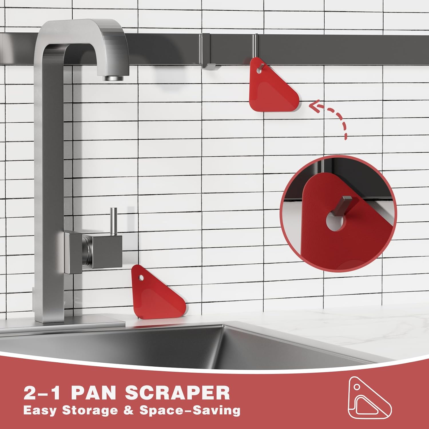 𝟮 𝗜𝗻 𝟭 𝗞𝗶𝘁𝗰𝗵𝗲𝗻 𝗦𝗰𝗿𝗮𝗽𝗲𝗿 – This pot scraper has 3 different corner angles; 2 hard plastic scraper sides and a great soft silicone scraper side. It’s easy to grip while scraping pots and pans, and is the best tool for cleaning the kitchen
