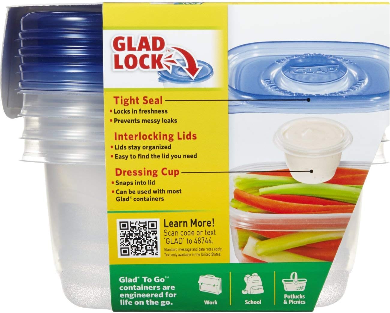 TO GO LUNCH FOOD STORAGE: With Glad reusable food containers you can prepare for multiple meals on-the-go with 4 food storage containers and 4 lids