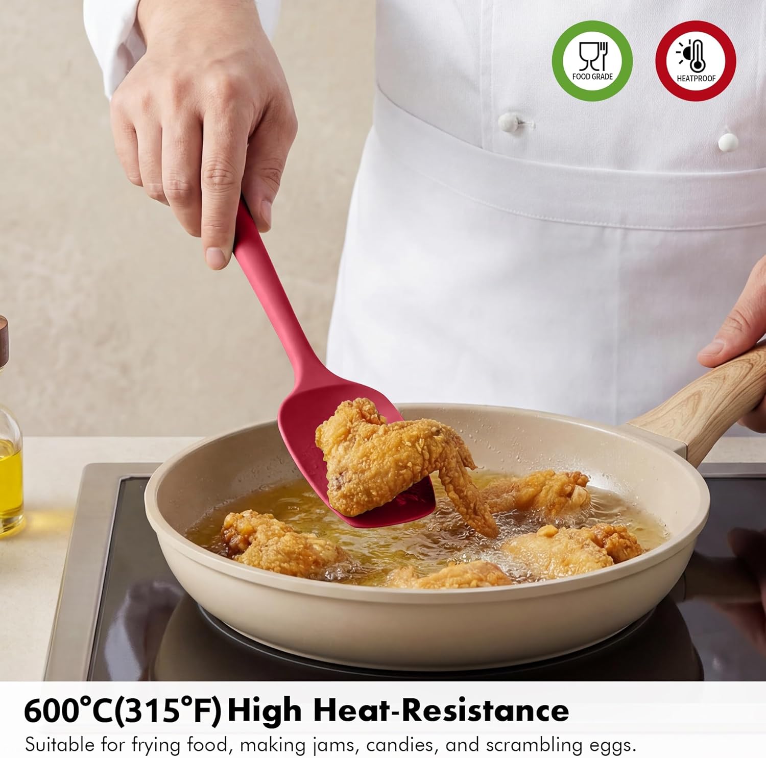 [Heat Resistant Up to 600°F (315°C)] Concerned about silicone cookware melting? Crafted from high-quality food-grade silicone, the Ironberry spatula offers exceptional heat resistance, withstanding temperatures up to 600°F (315°C). This ensures safe and dependable use with all your hot cookware. From high-temperature tasks like making jam or candy to everyday jobs like scrambling eggs and serving rice, this versatile spoonula handles everything from stirring and flipping to scooping with ease.