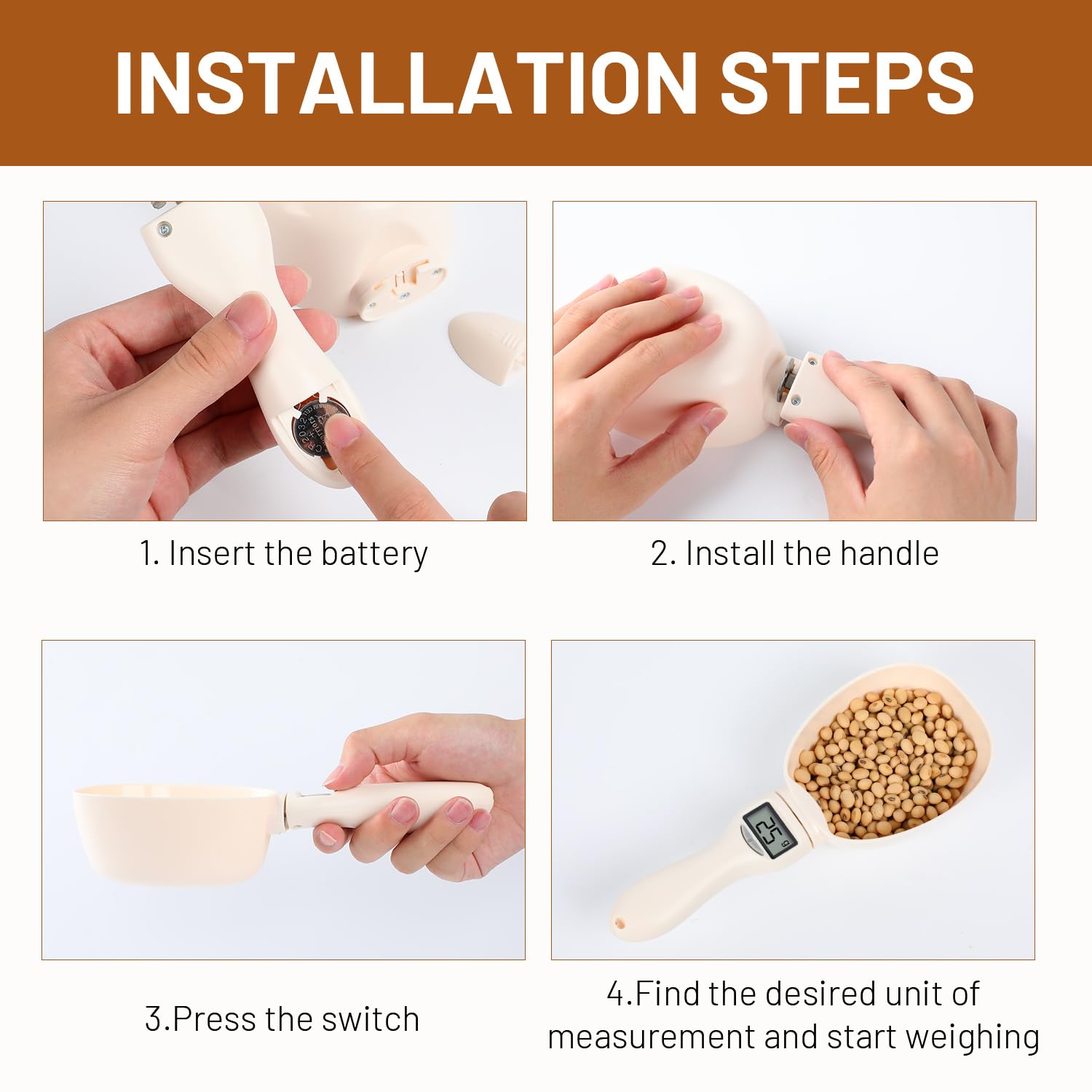 [High Precision 0.1g Scale & Built-in Scoop – 2-in-1 Design] Equipped with upgraded high-precision sensors, this Electronic Measuring Spoon Scale delivers accurate readings from 1g to 800g with 0.1g sensitivity.Food Measuring Scoop Scale is ideal for precise portioning in cooking, baking, dog and cat food measuring, and other daily weighing needs,replacing a cluttered set of traditional measuring spoons and cups
