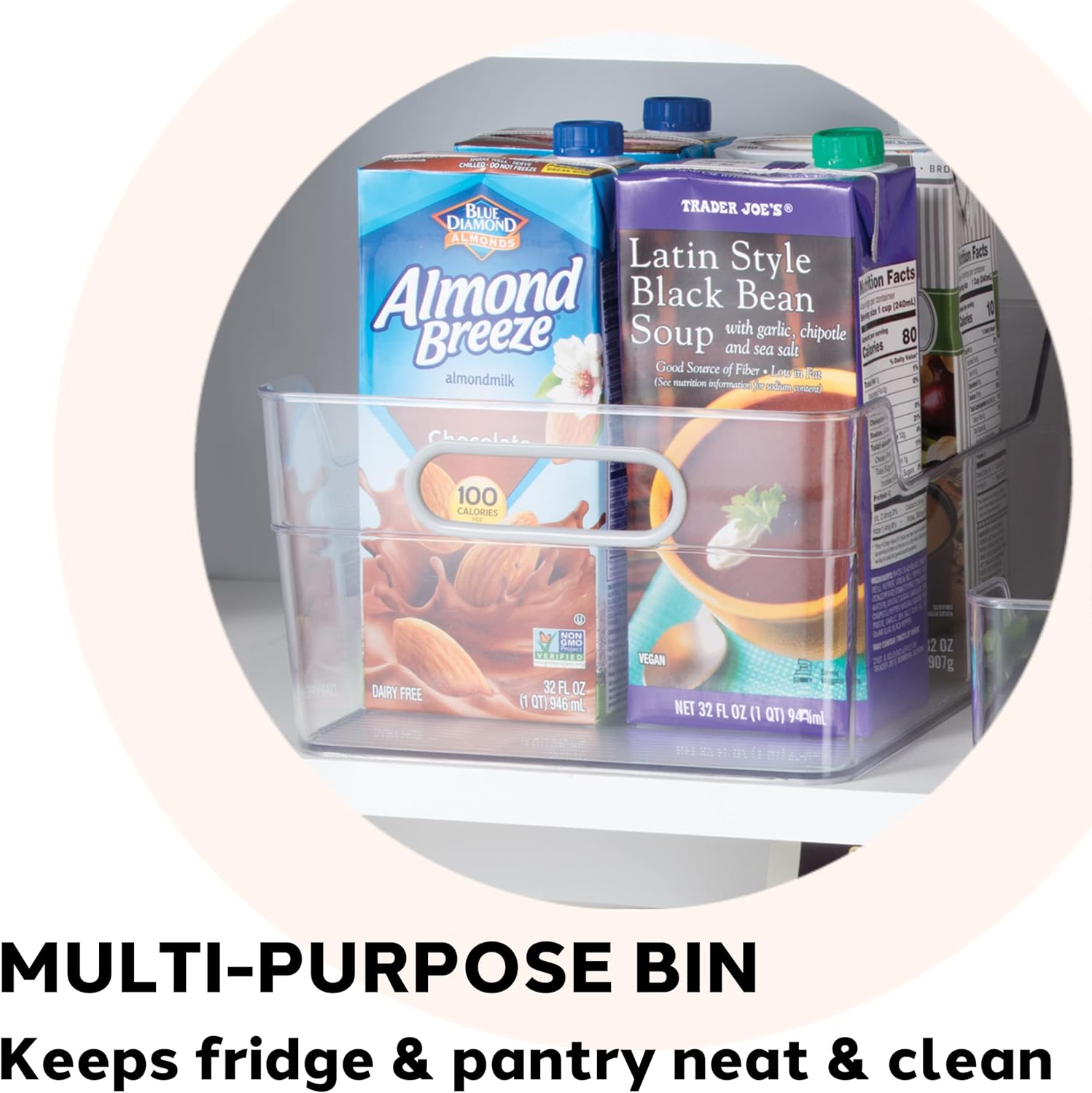STORE: Nestable bins, nest together when empty to maximize space for grocery organization and storage
