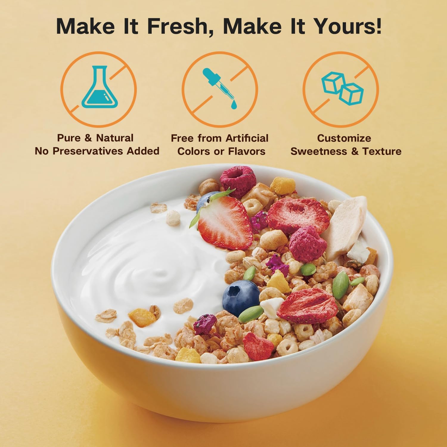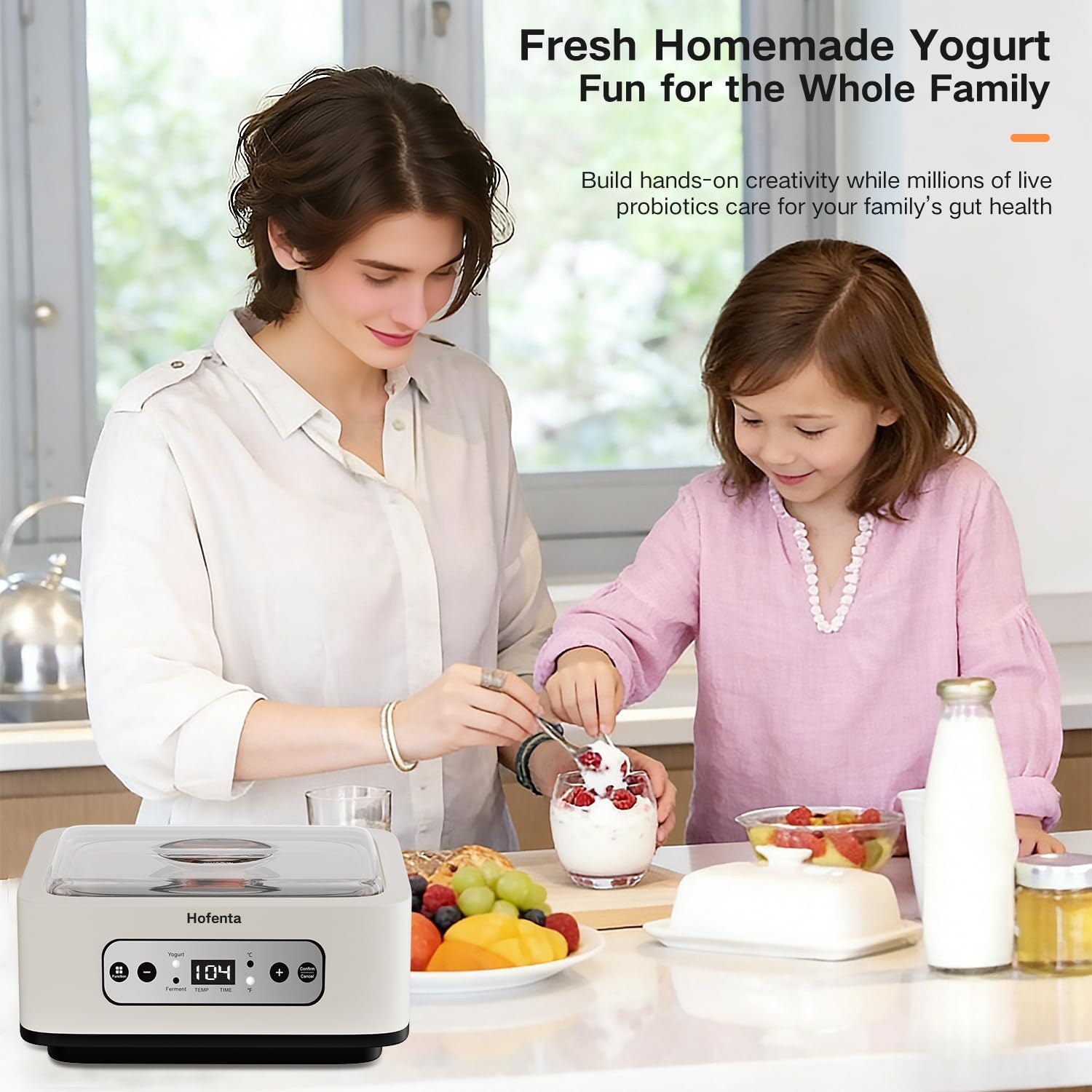 Customizable Texture & Sweetness – Tailor your yogurt to your preferred taste by adjusting the texture and sweetness. Unlike store-bought varieties, Hofenta yogurt is free from artificial additives, preservatives, colors, or flavors. You can create a pure and natural yogurt base, allowing you to control the level of sweetness, creaminess, and texture. Perfect for health-conscious individuals who want to enjoy fresh yogurt without compromise.