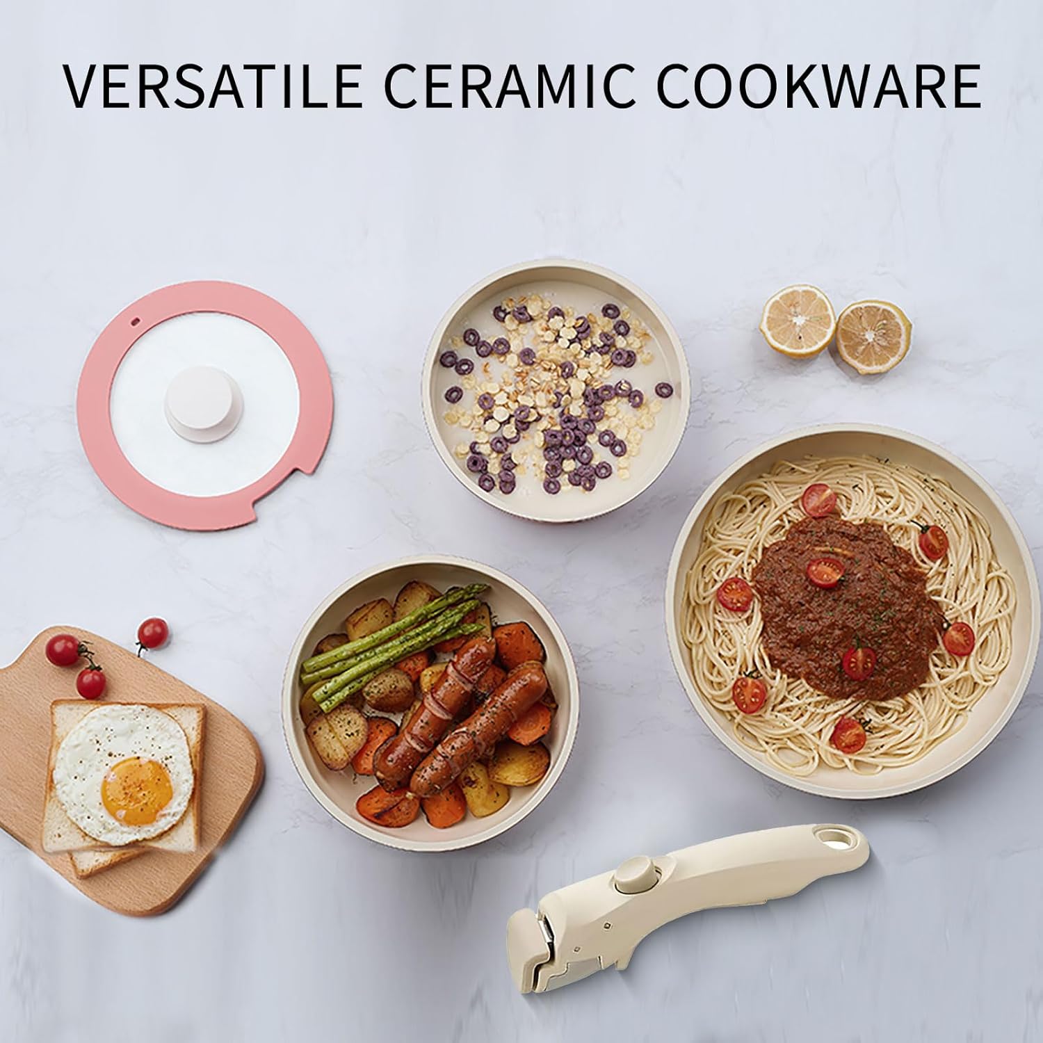 Convenient Removable Handle: The removable handle effortlessly transitions your pots and pans from induction cooktop to oven, grill, fridge, and tabletop in a click. Its versatility saves space while introducing a fresh cooking style.