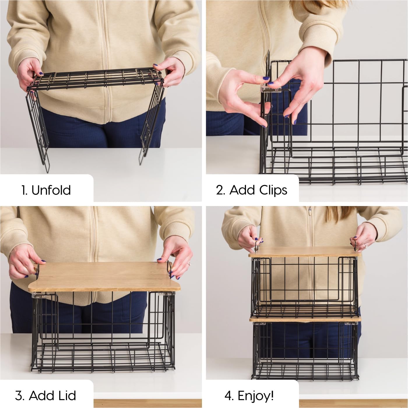 SPACE SAVING & STURDY: Easily folds flat for convenient storage when not in use, perfect for maximizing small or shared spaces. Each unit can hold up to 26 lb per tier (52 lb total per unit), and when stacking two units, they can hold up to 79 lb.