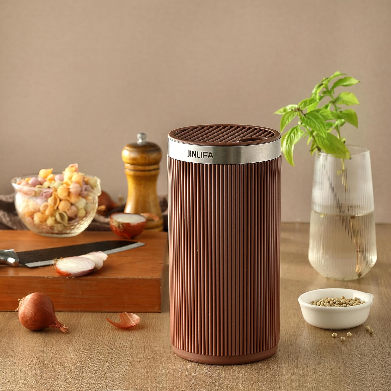 3. Elegant Modern Aesthetic:This knife block without knives doesn’t just organize — it elevates your kitchen’s look. The warm brown color and sleek design complement a wide range of kitchen styles, from farmhouse and rustic to modern and minimalist. Whether placed beside your stovetop or in the corner of your prep area, this knife storage organizer stand adds a subtle touch of style while blending seamlessly with your decor.