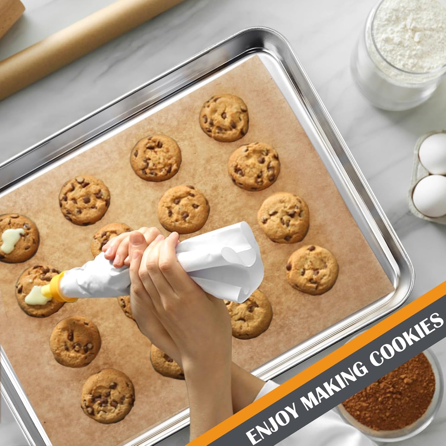 【STURDY SHEETS】 Made of heavy gauge stainless steel to reduce the risk of deformation, The reinforced rolled rim provides sturdy construction, Not easy to twist and warp, Sturdy and durable for long service life, Round edges with no sharp spot, Comfortable to hold and transfer
