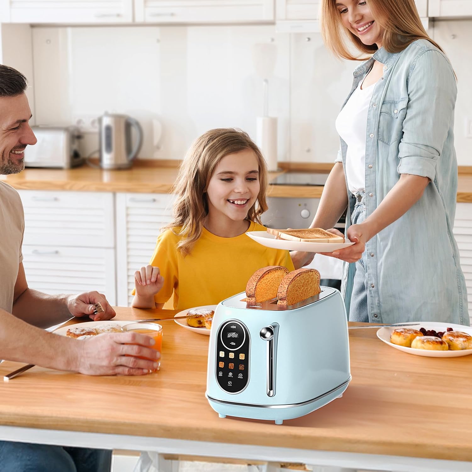 Smart Touch Screen Control – Experience modern convenience with the intuitive touch screen toaster interface. Easily control your toasting preferences with just a touch, making it quick and simple to get the perfect toast every time.