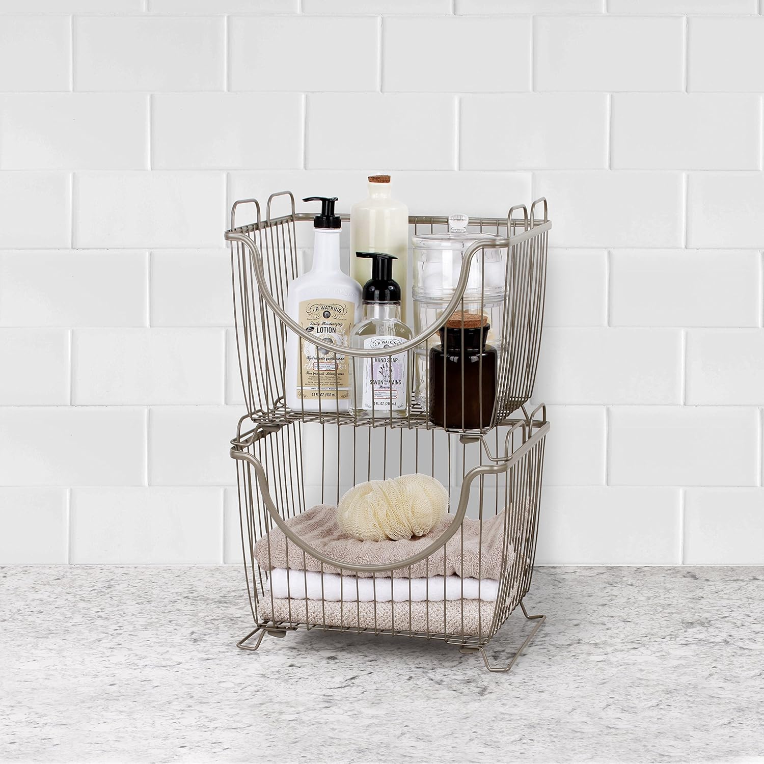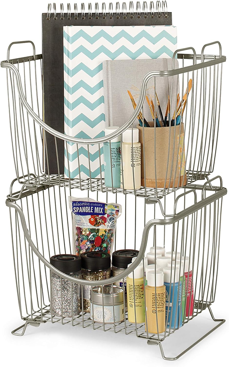 STACK BASKETS FOR MORE STORAGE: Feet loop over handles to create a modular storage solution. Stack multiple baskets to maximize vertical space in pantries, closets, countertops, cabinets, and more. Stackable trays organize craft and office supplies, bathroom accessories, tea and coffee, non-perishable pantry items, and more. Interlocking modular system allows you to mix and match with other Ashley Stacking baskets from Spectrum.