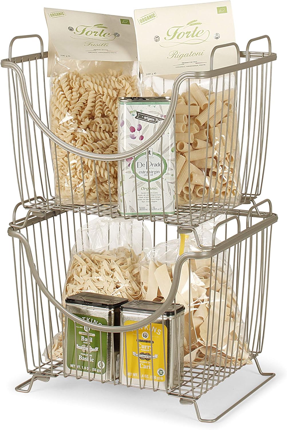 Customers find the basket to be of good quality and sturdy, with one mentioning it works well in their pantry. They appreciate its size, with one noting it can hold ten pounds of potatoes, and its storage capacity, with one customer using it for potatoes in their pantry. The functionality receives positive feedback, though opinions about lockability are mixed, with one customer noting it’s not easy to unstack. Customers disagree on the space-saving benefits.