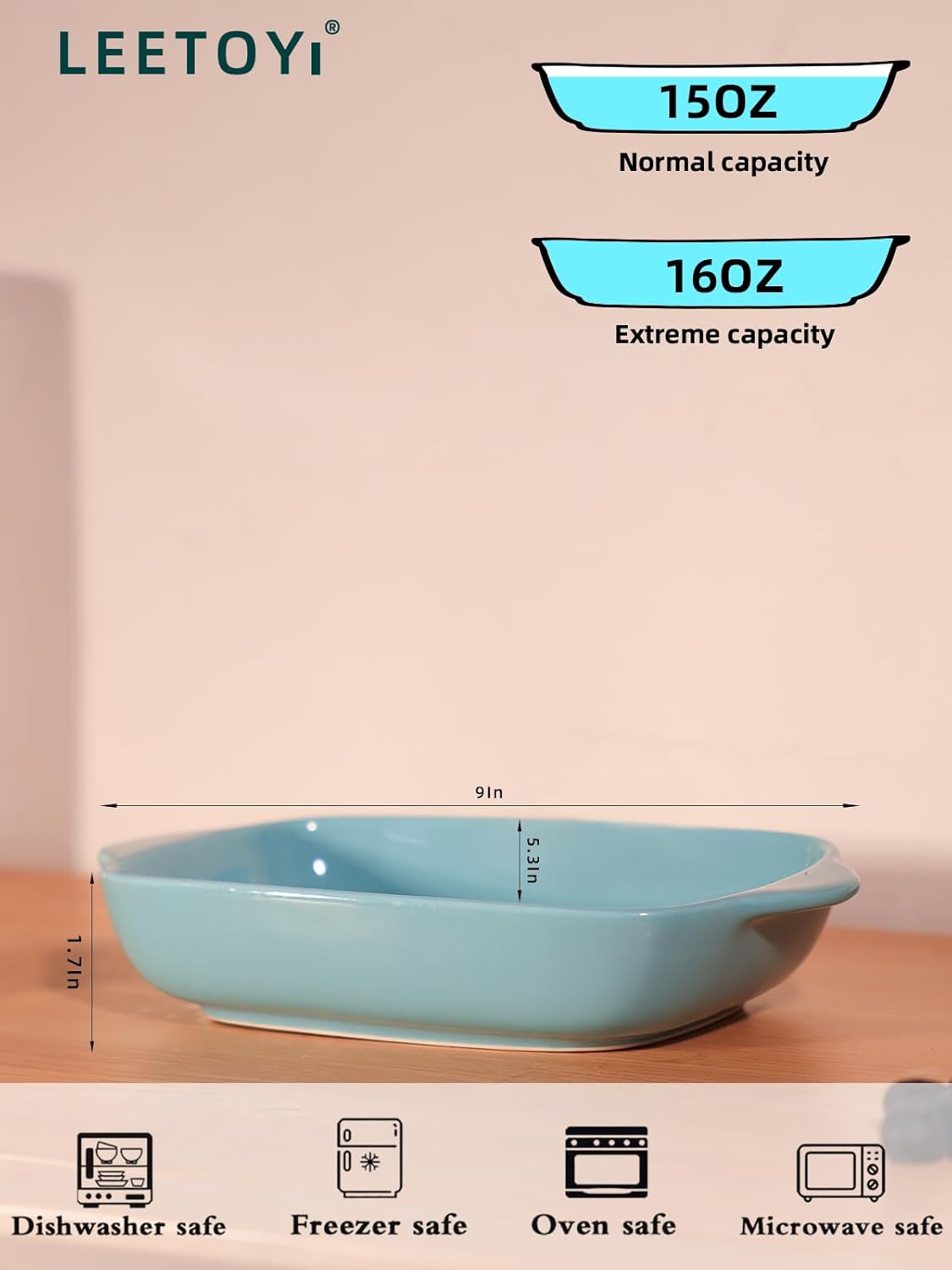 Perfect For 1, 2 People: The size are 7.5″Lx5.3″Wx1.7″H And Set of 4.This size is very suitable for one person or two person food. It is perfect to enjoy alone time or two people alone. After receiving it, you will like it even more.amic Small Baking Dish 7.5 Inch Set of 4, Rectangular Bakeware with Double Handle, Baking Pans for Cooking and Cake Dinner