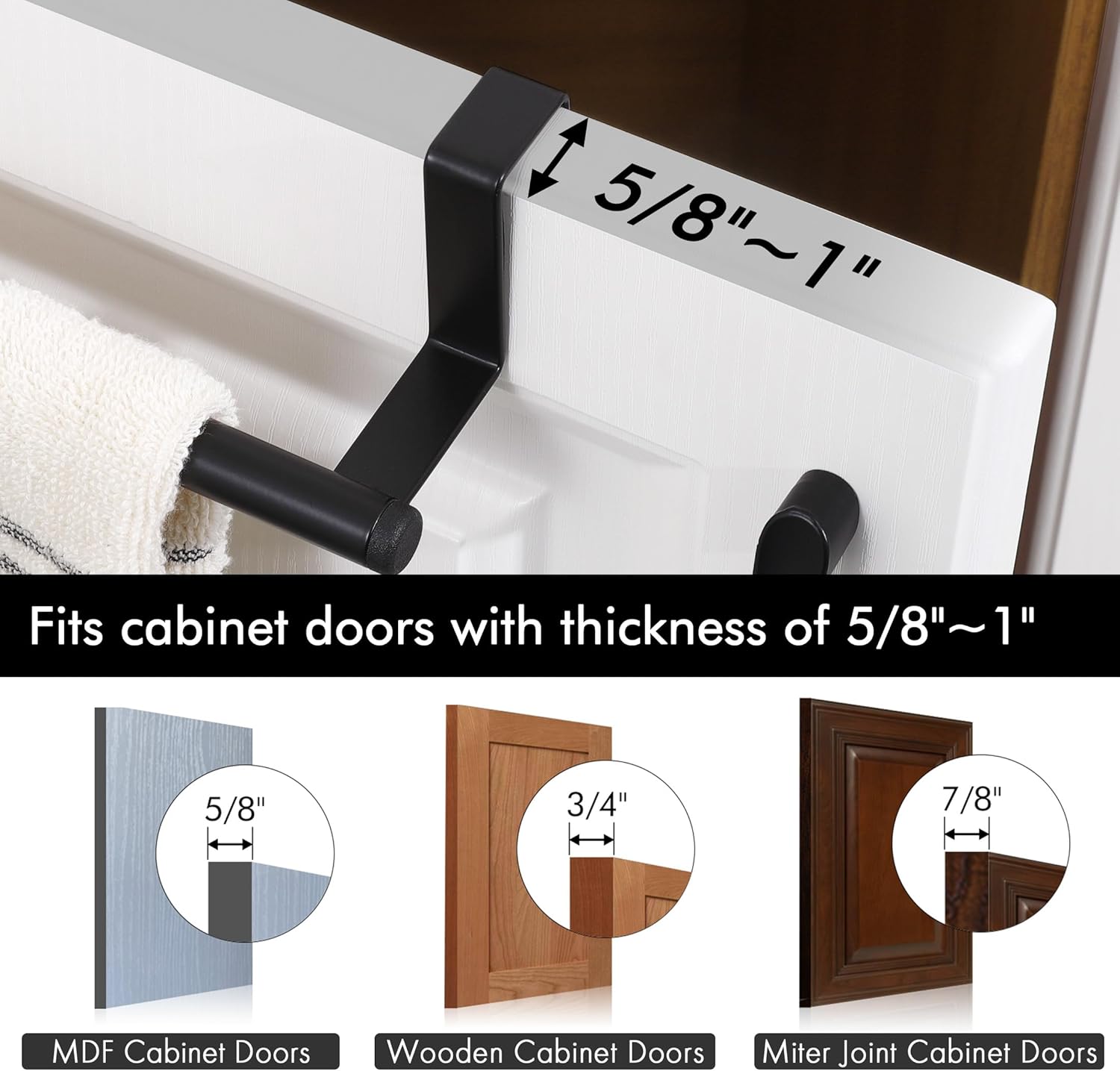 [Measure Before Purchasing] This over cabinet towel bar fits cabinet doors that are between 5/8″-1″ wide. Check that your cabinet door is less than 1″(25mm) thick and the door gap is 0.08″(2mm) prior to purchasing.