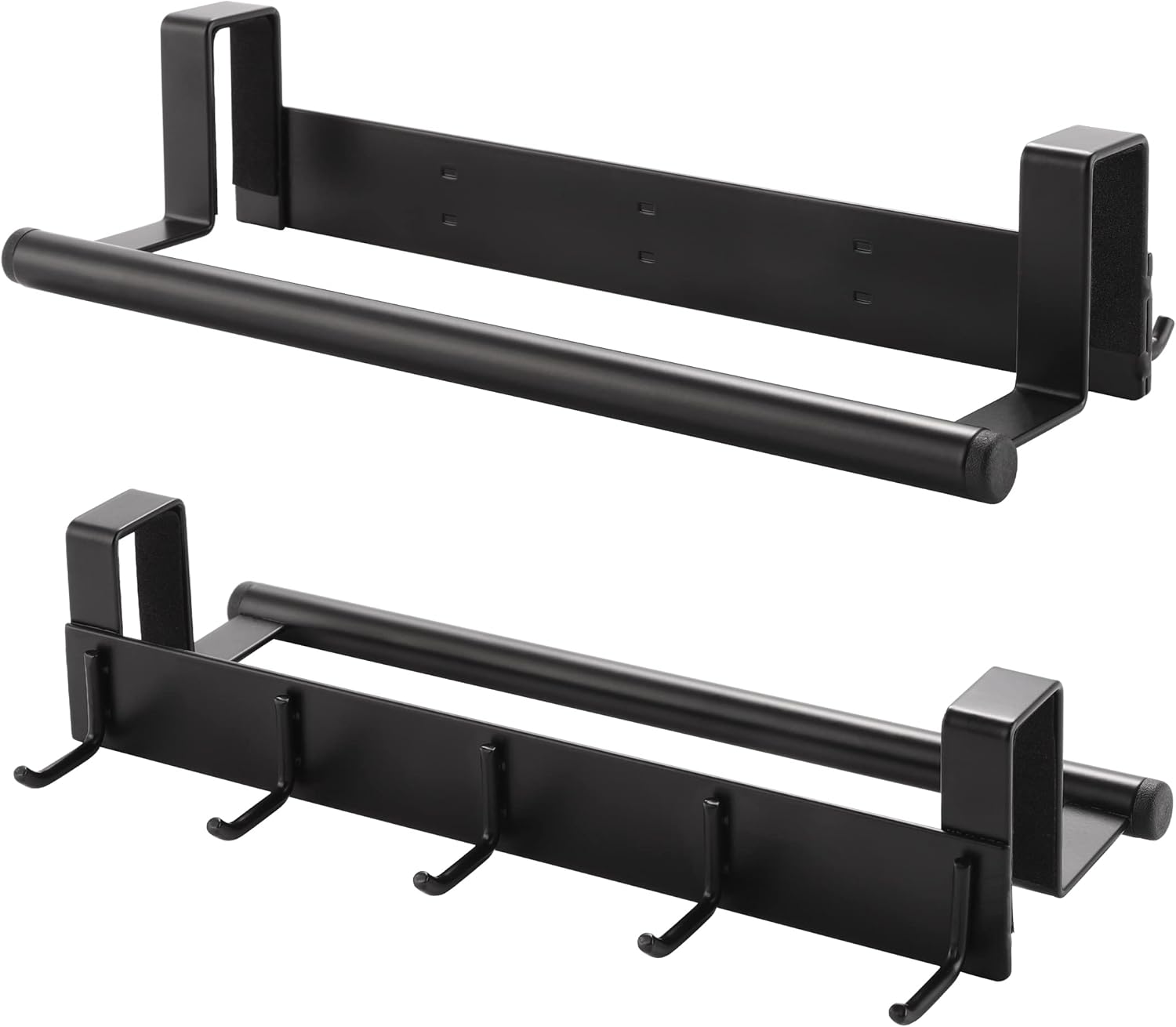 Matte Black Over Cabinet Towel Bar & Hook Set – 2 Pack
