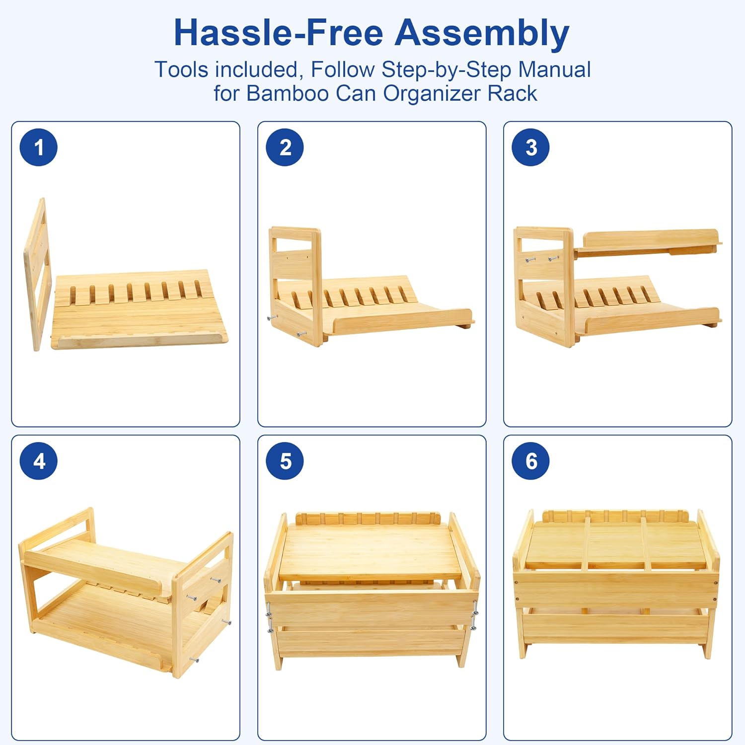 【Easy to Assemble with Complete Accessories】 The assembly process is simple and straightforward, complete with accessories, and can be installed in just 10 minutes. Keep your kitchen organized with our stackable bamboo canned food and pet food organizer.