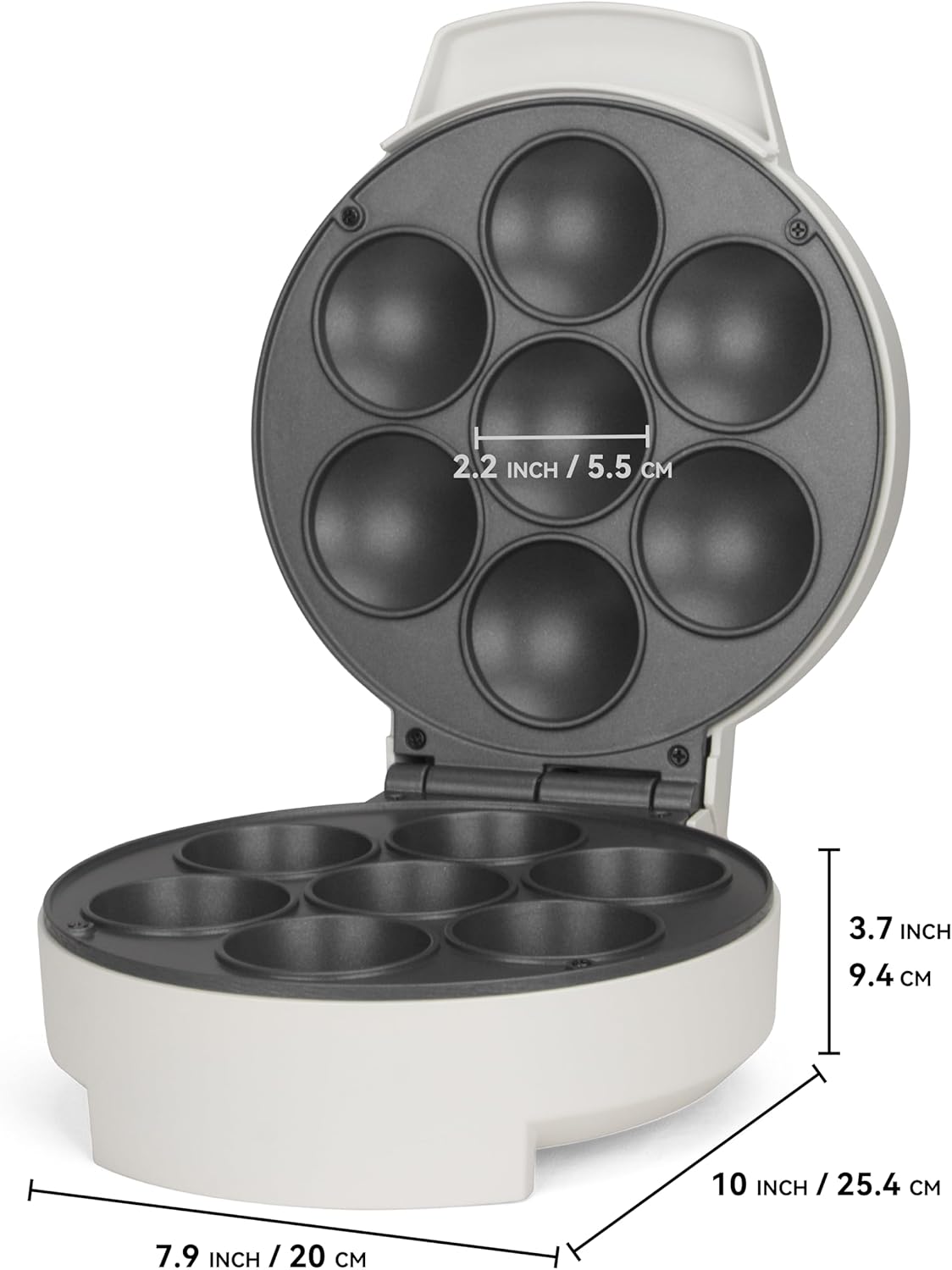 [QUICK BAKING]: Just plug in the device, wait a few minutes for it to preheat, and once the indicator light turns off, you’re ready to start cooking! This cupcake maker can bake seven mini cupcakes, muffins, or brownies in no time. You can enjoy mouthwatering treats without even needing to fire up your oven.
