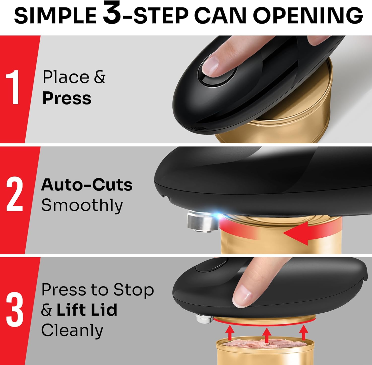 🔪 Smooth-Edge Cut Technology – Our side‑cutting blade cleanly slices along the rim, leaving a smooth, safe edge on both the lid and can so you never risk cuts or jagged metal.