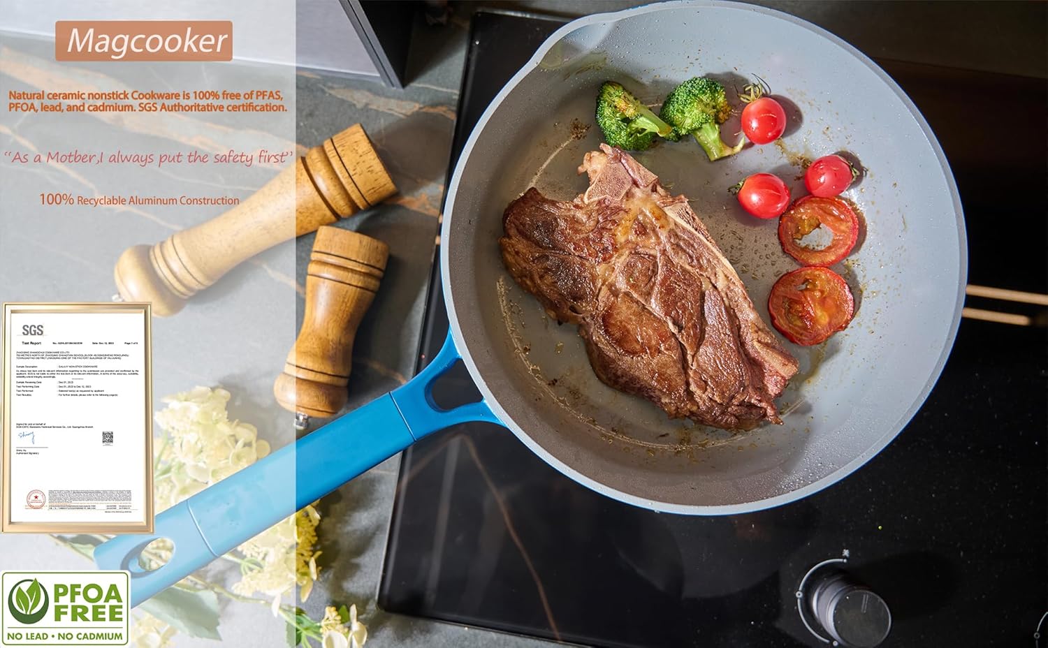 【Toxin-free non-stick cookware】- Our cookware the coating is made from ceramic coating. When you buying our product , Please make sure that it is not include the lead,cadmium PFOA-free. You don‘t want to have in your cookware because of their potential health dangers. We always put the health first.Please worry-free for cooking.