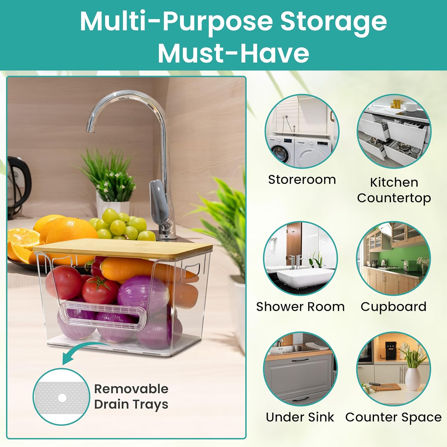 Front Opening with Removable Stopper & Drain Trays: Access your potatoes effortlessly with the front opening and removable stopper. Keep food fresh, easy to clean, ideal for veggies & fruits, reusable, durable design ensuring convenience and freshness.