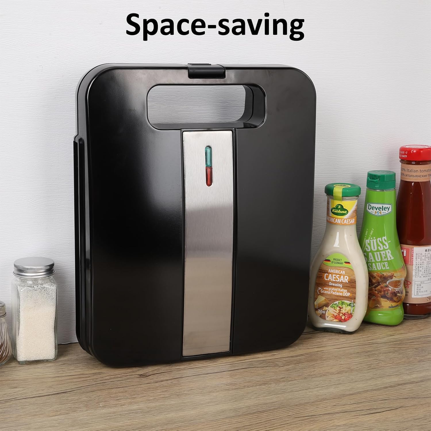 Compact and Versatile: Its lightweight design makes it an ideal addition to dorms, small apartments, and any kitchen. The sandwich maker stands upright, taking up minimal counter space, while adding functionality to your small appliances collection.
