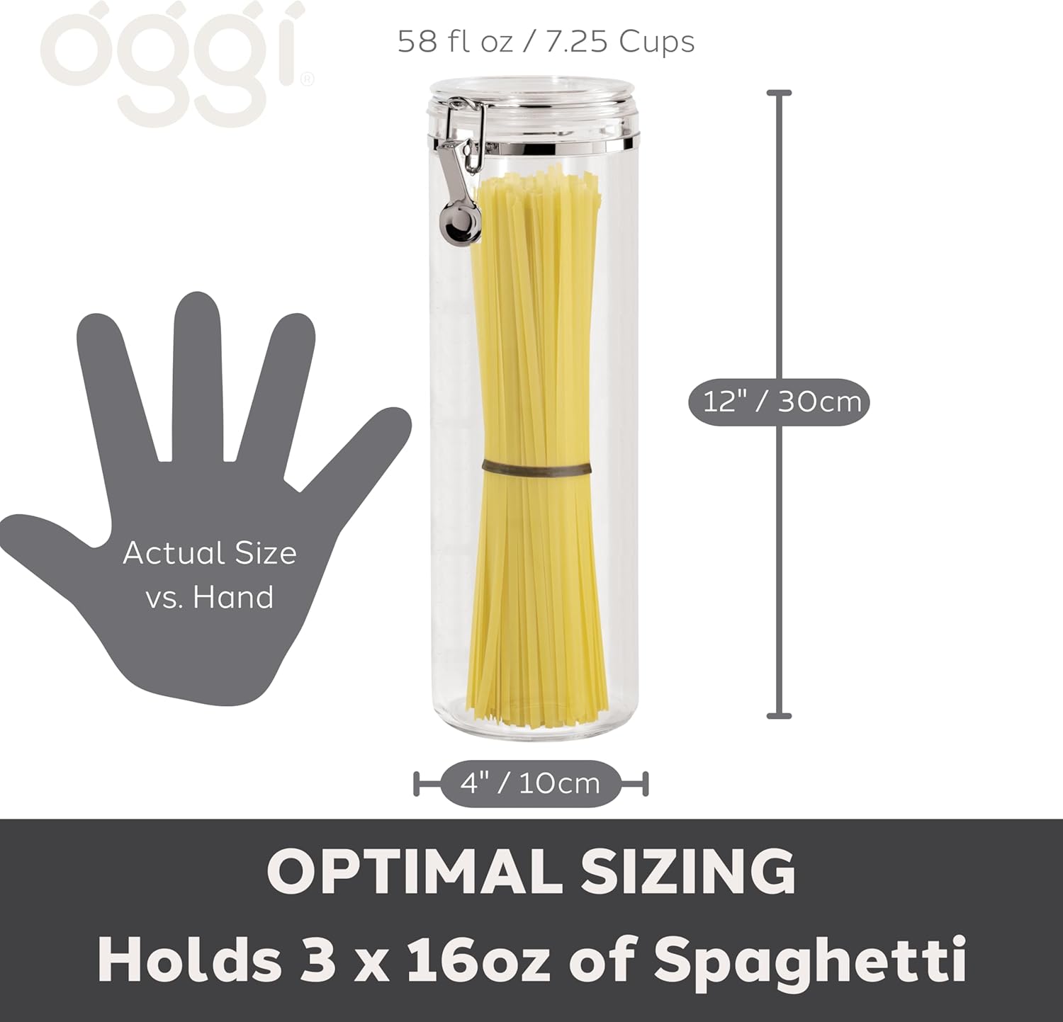 GREAT VALUE 58 fluid oz AIR TIGHT CANISTER: This essential and decorative kitchen must have canister is suitable for storing spaghetti and other dried pasta.