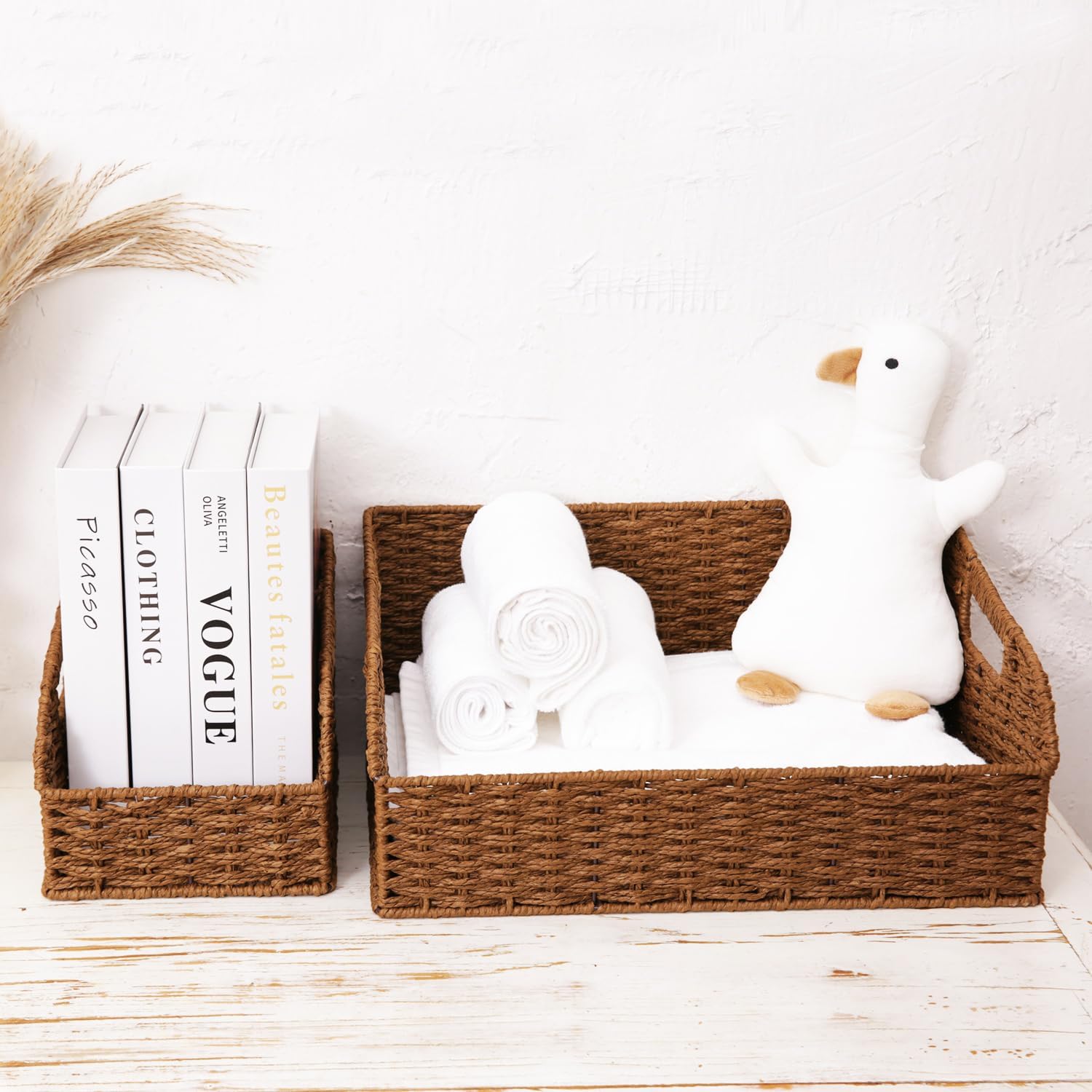 【Eco-Friendly】:Crafted from 100% natural Paper Rope with handwoven craftsmanship—eco-friendly and sustainable, reducing environmental impact. Free of harmful chemicals, non-toxic, safe for storing food-related items (fruits, grains, snacks) and kid’s toys.