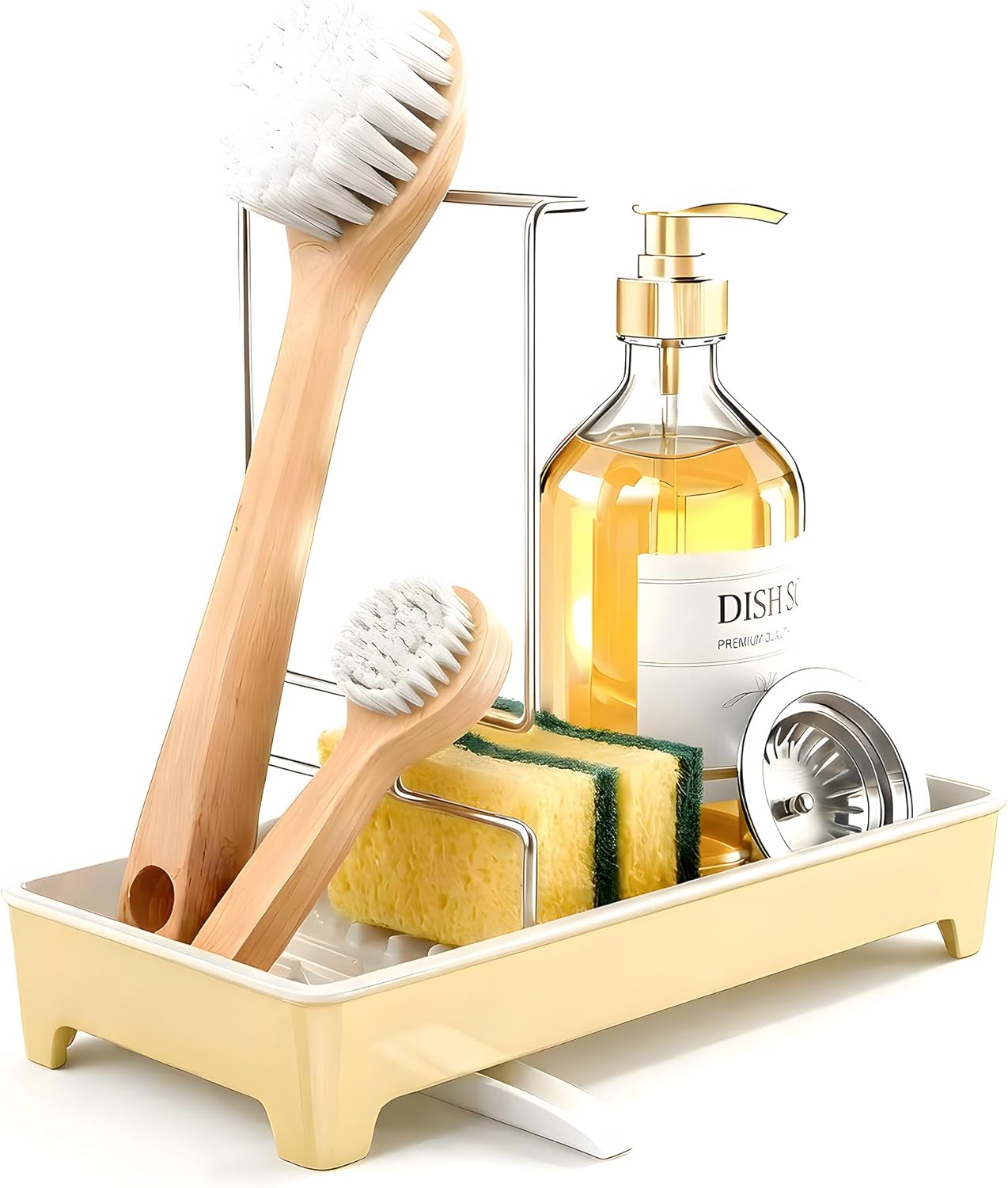 Pastel Yellow Minimalist Sink Caddy: Rustproof Sponge & Brush Holder