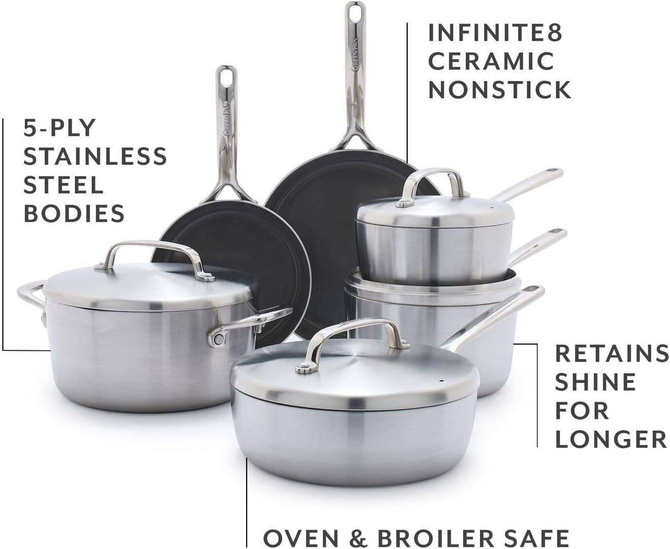 CUTTING-EDGE CERAMIC NONSTICK: Infinite8, the most state-of-the-art ceramic nonstick GreenPan has ever created, an ultra-durable coating with layers of diamonds for cutting-edge performance and durability, metal utensil safe