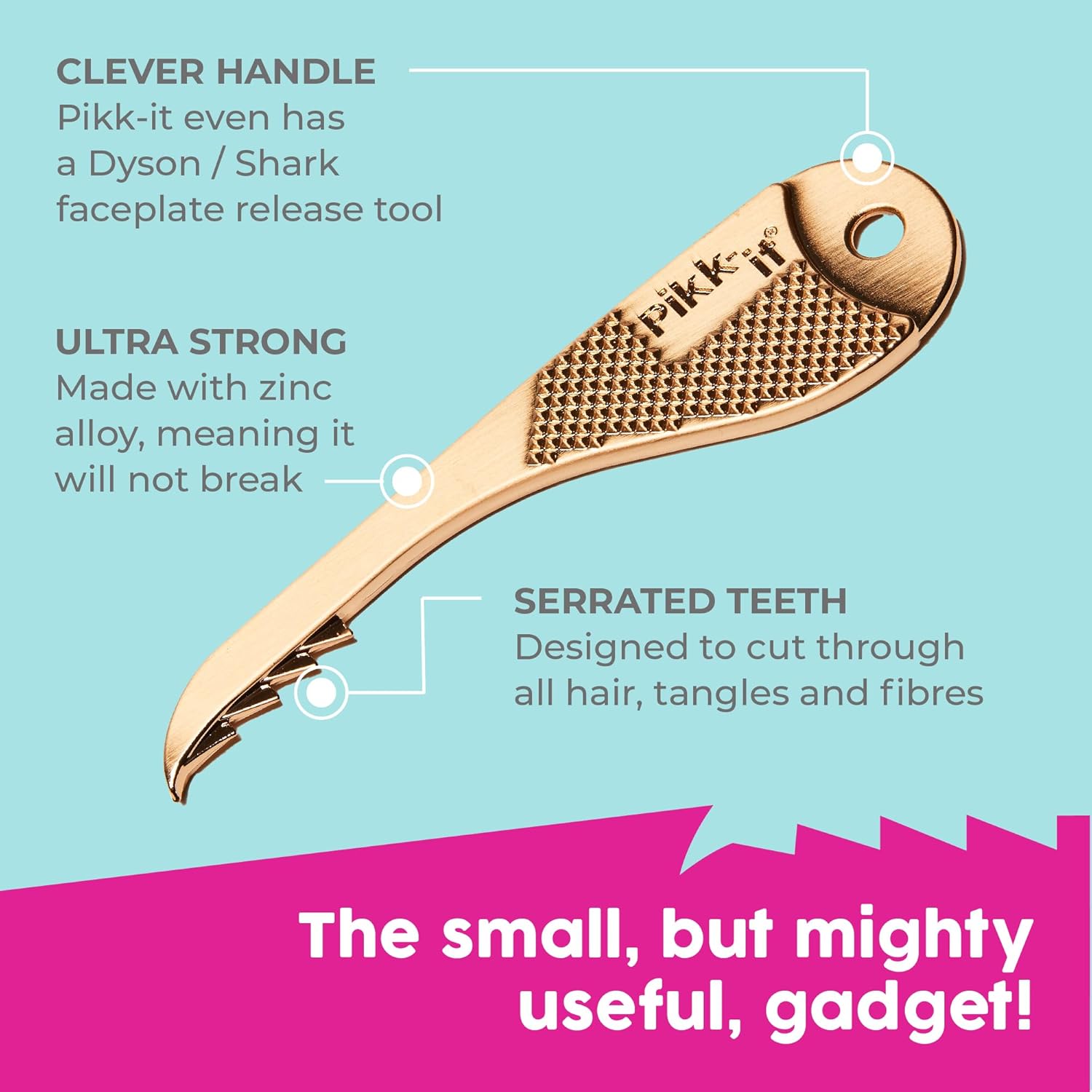 ✅ TOTALLY UNIQUE VACUUM TOOL: The Pikk-it hair rake is made from zinc alloy – unbreakable – gold in colour – hair removal from vacuums and hairbrushes – increased vacuum efficiency – easily open boxes