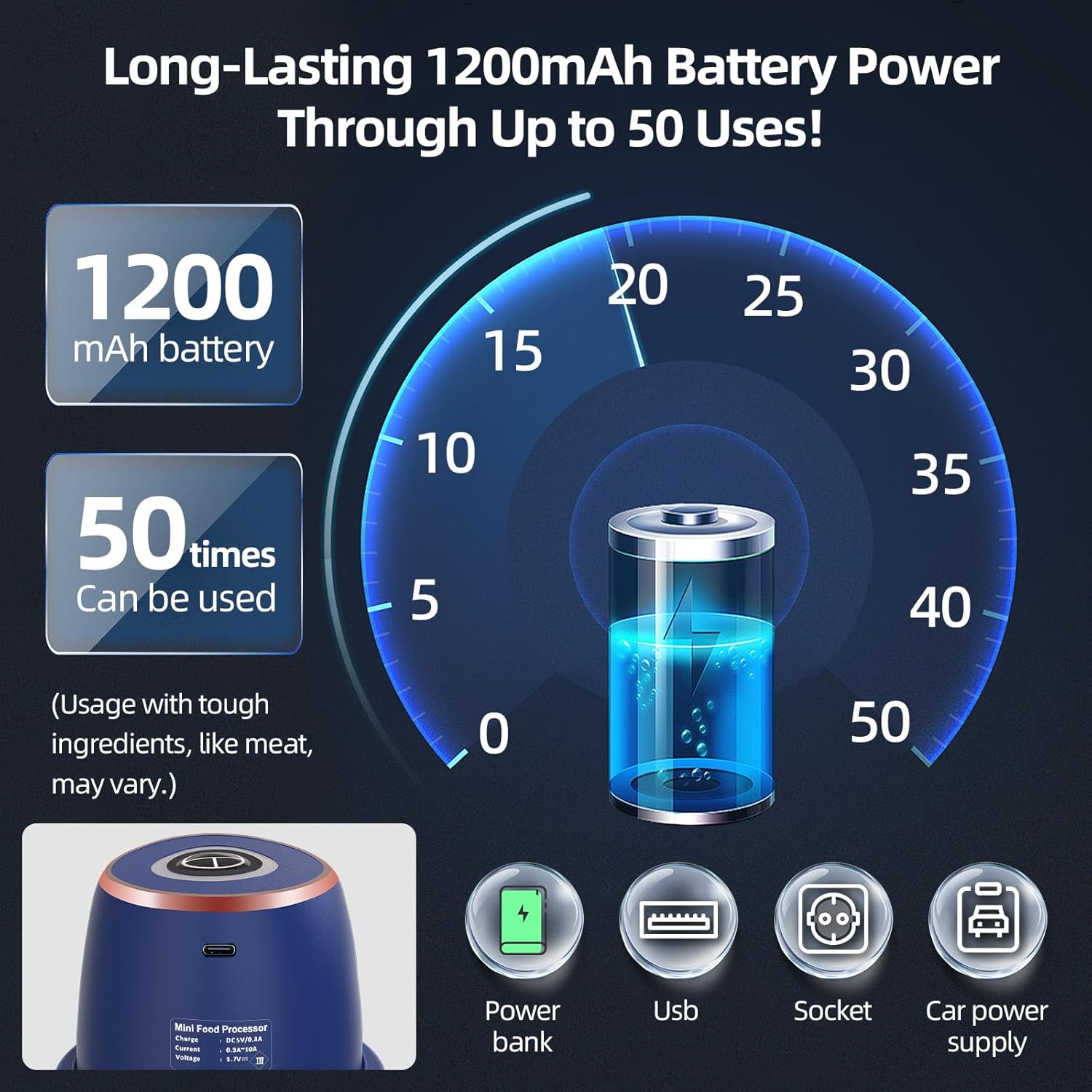 CORDLESS & RECHARGEABLE: USB charging allows cord-free use; lasts for up to 50 uses on a single charge. Perfect for kitchen, travel, or small spaces.