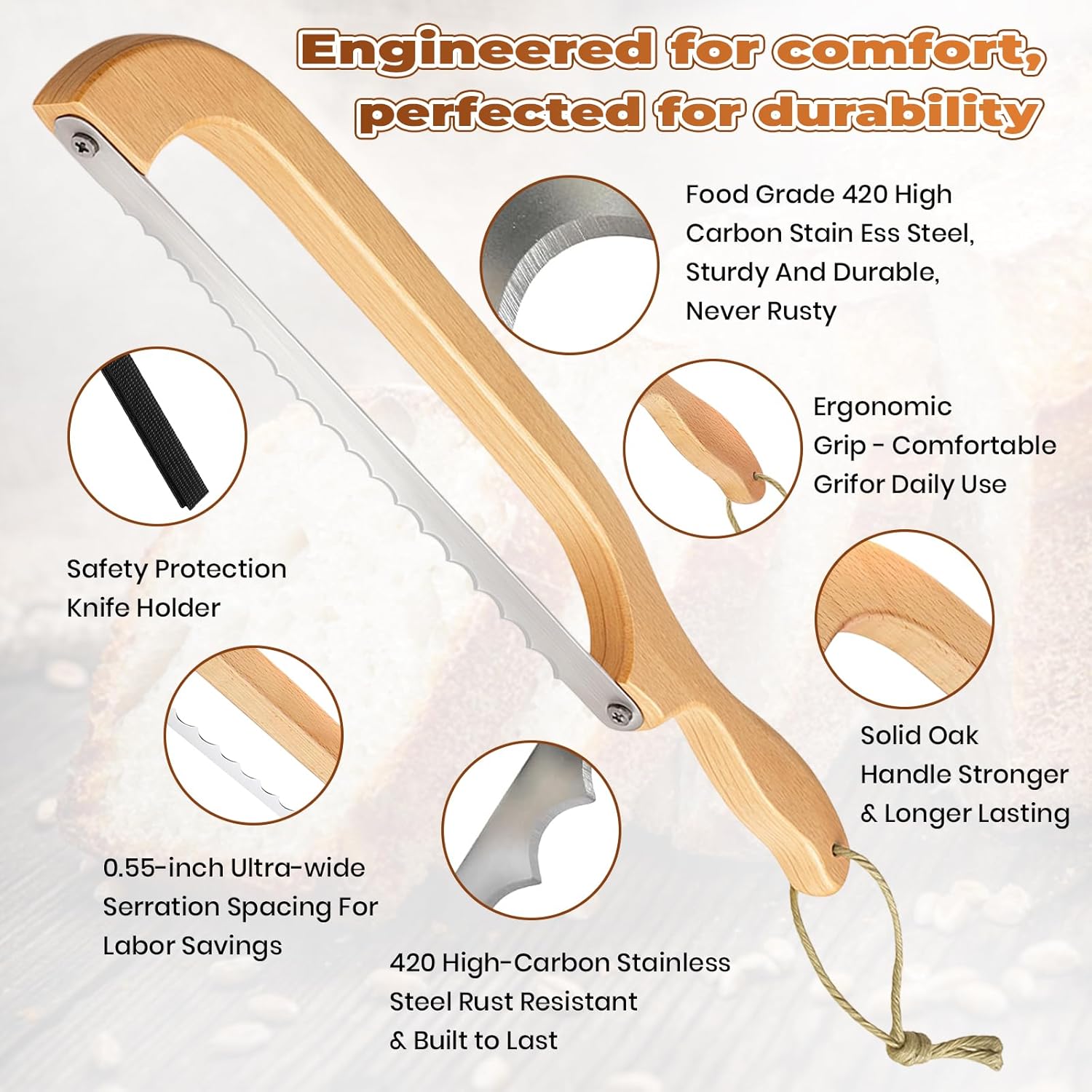 ERGONOMIC DESIGN: Natural wooden handle provides comfortable grip and superior control while cutting crusty breads and soft loaves