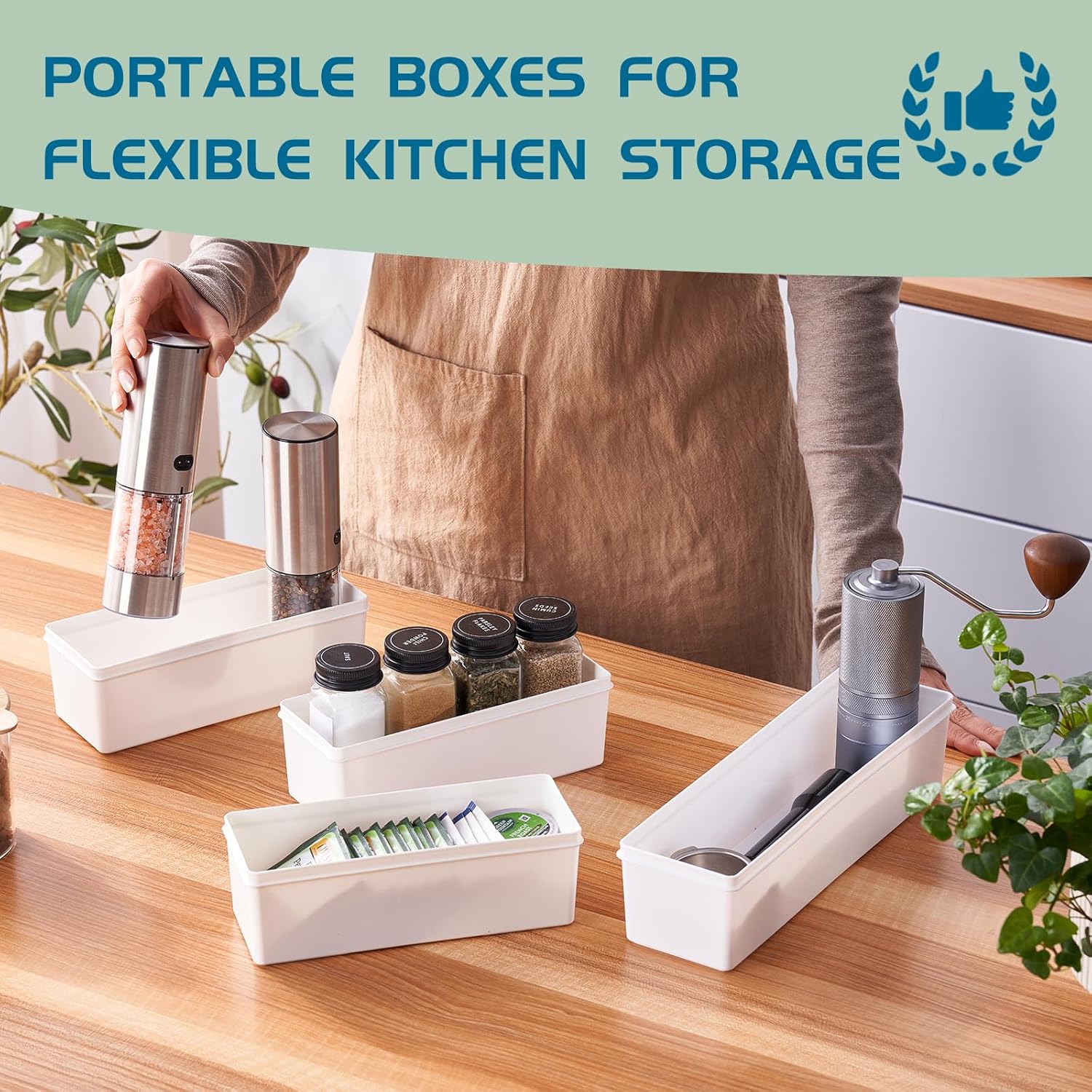 PRE ASSEMBLED: The kitchen bag organizer for drawer comes pre-assembled it has 4 separate drawer baggie Organizer boxes, so you can put them together or split according to your needs.