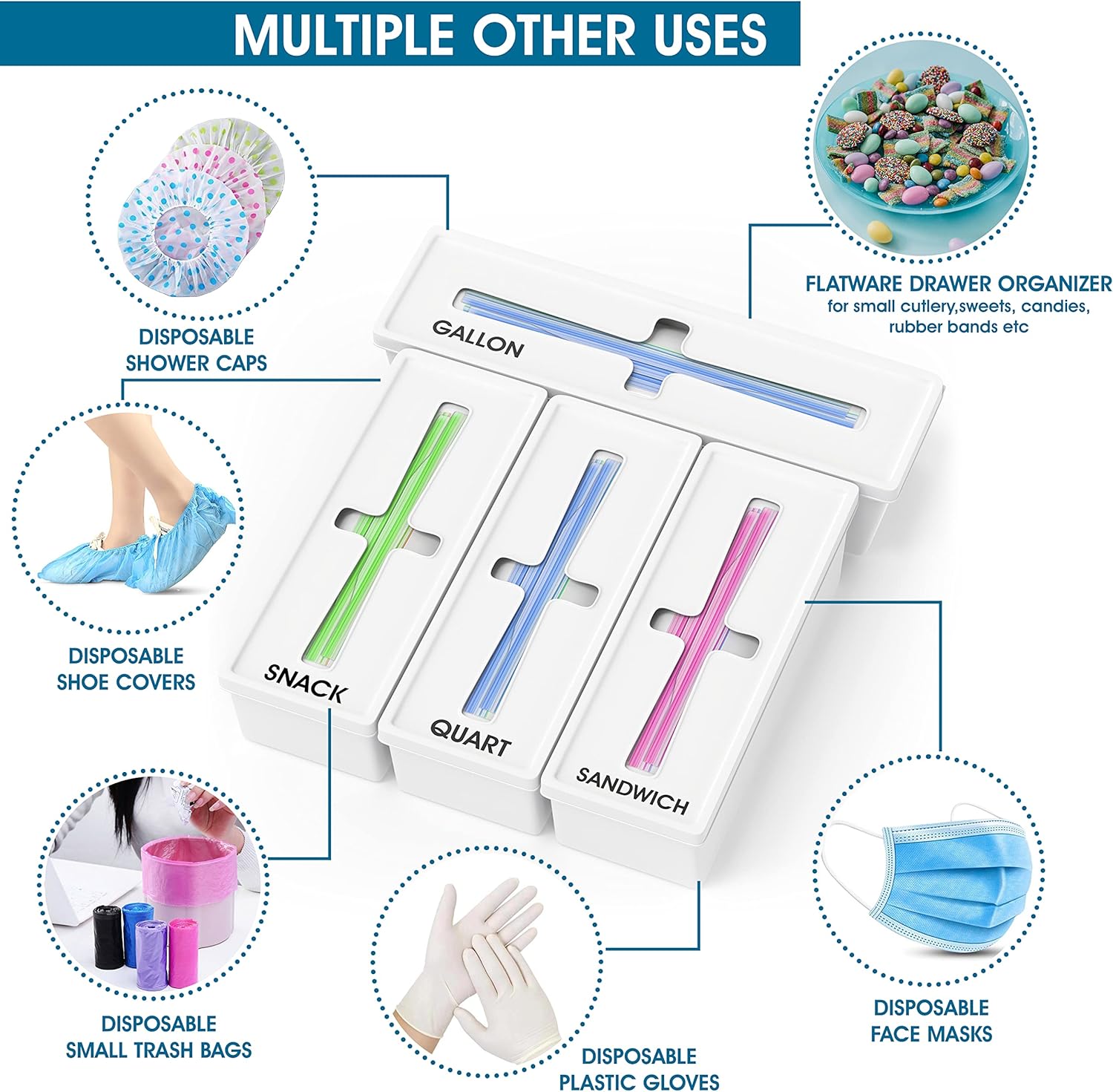 COMPATIBLE WITH MOST BAG BRANDS: Qualezy sandwich bag organizer for drawer has 4 separate organizer boxes for variety of large and small size storage bags. This food storage bag organizer has amazing hold capacity, designed for most brands gallon quart sandwich and snack bags.