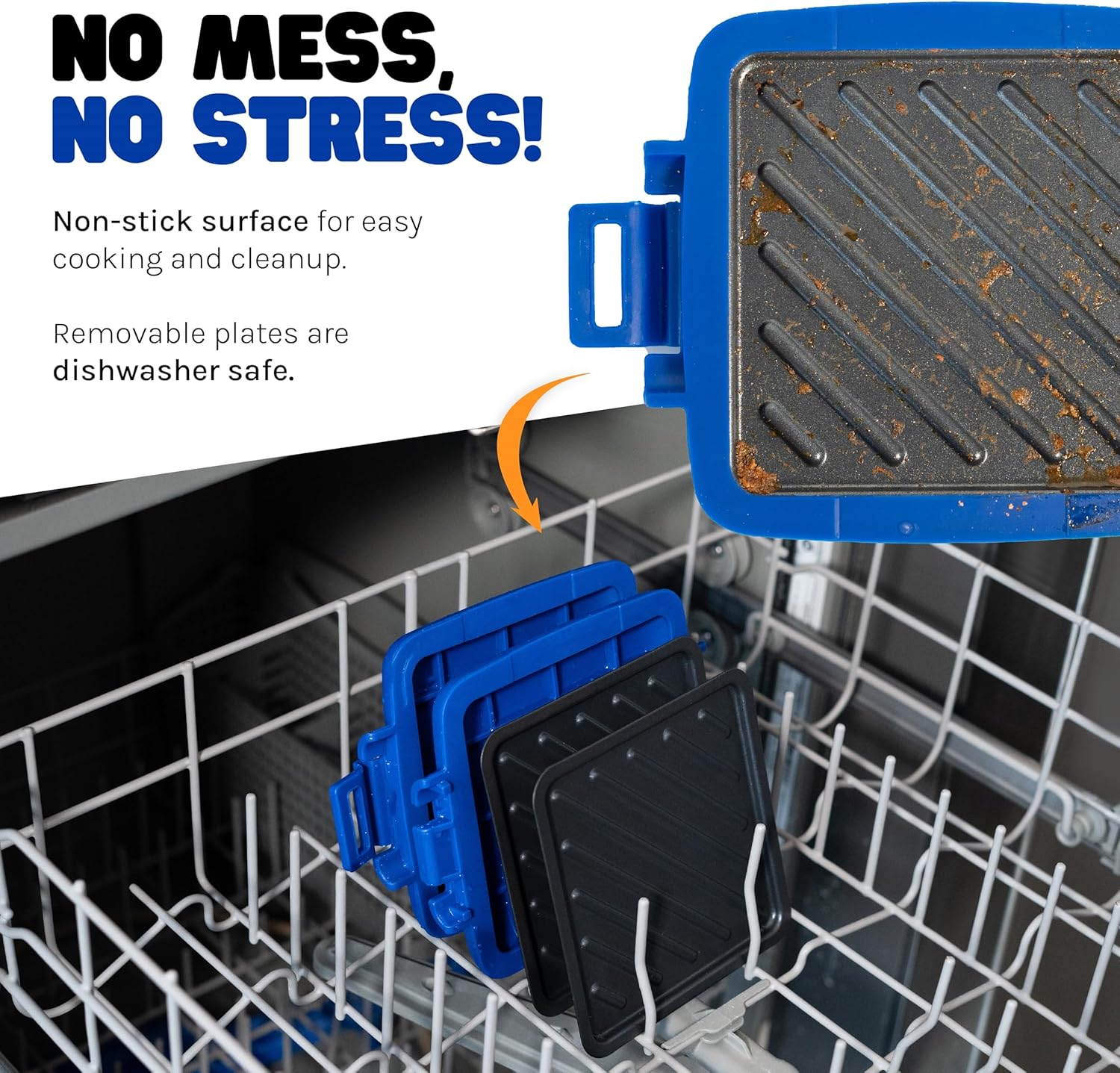 Non-Stick coating means no mess and no stress. Cleans easily no matter what you grill whether its Sausages, Wings, Patties and Sandwiches