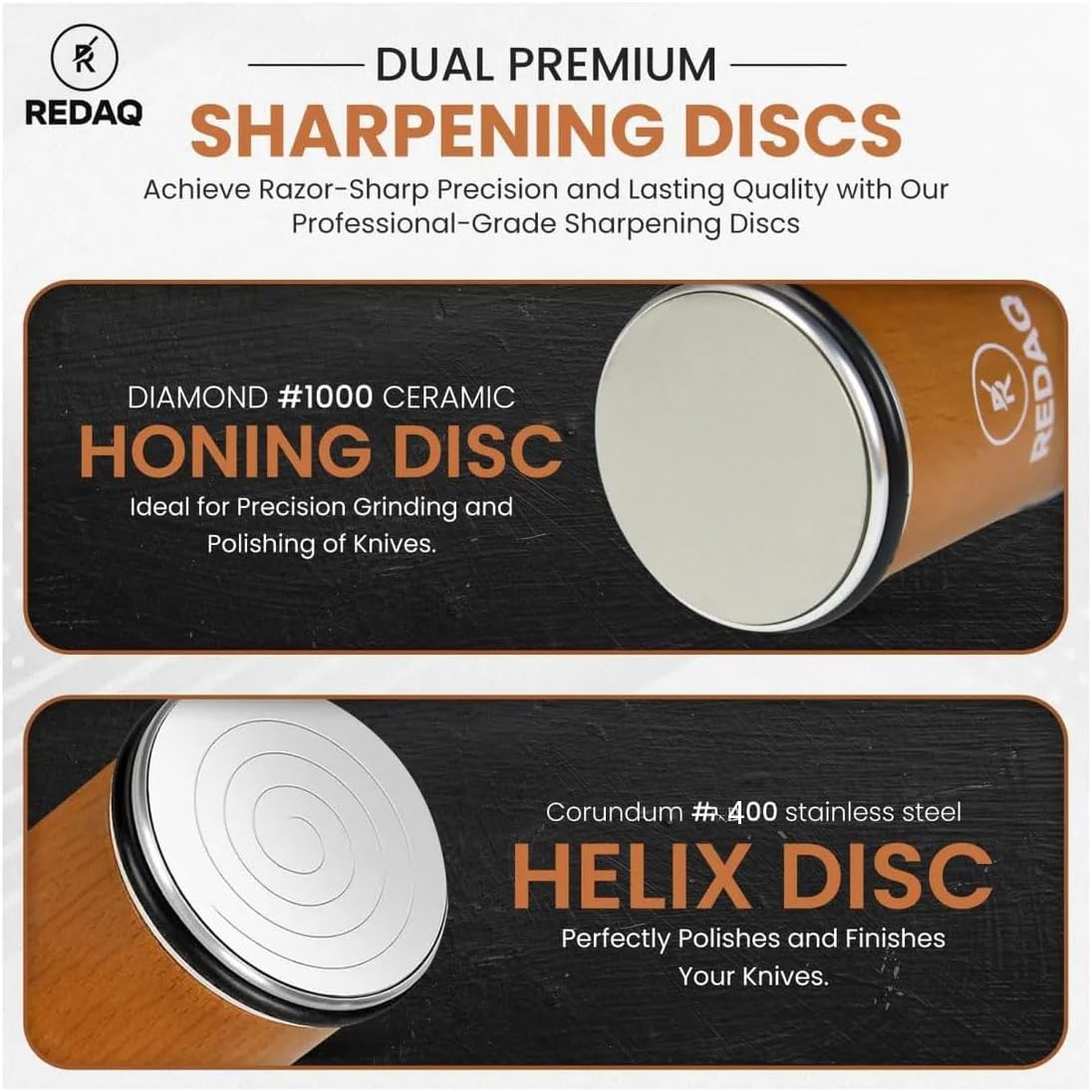 Restore, then refine your edge – Stop wasting money on replacements. Use our pentagon knife sharpener with #400 diamond disc to restore damaged edges, then finish with the #1000 corundum disc for razor-sharp, long-lasting performance.