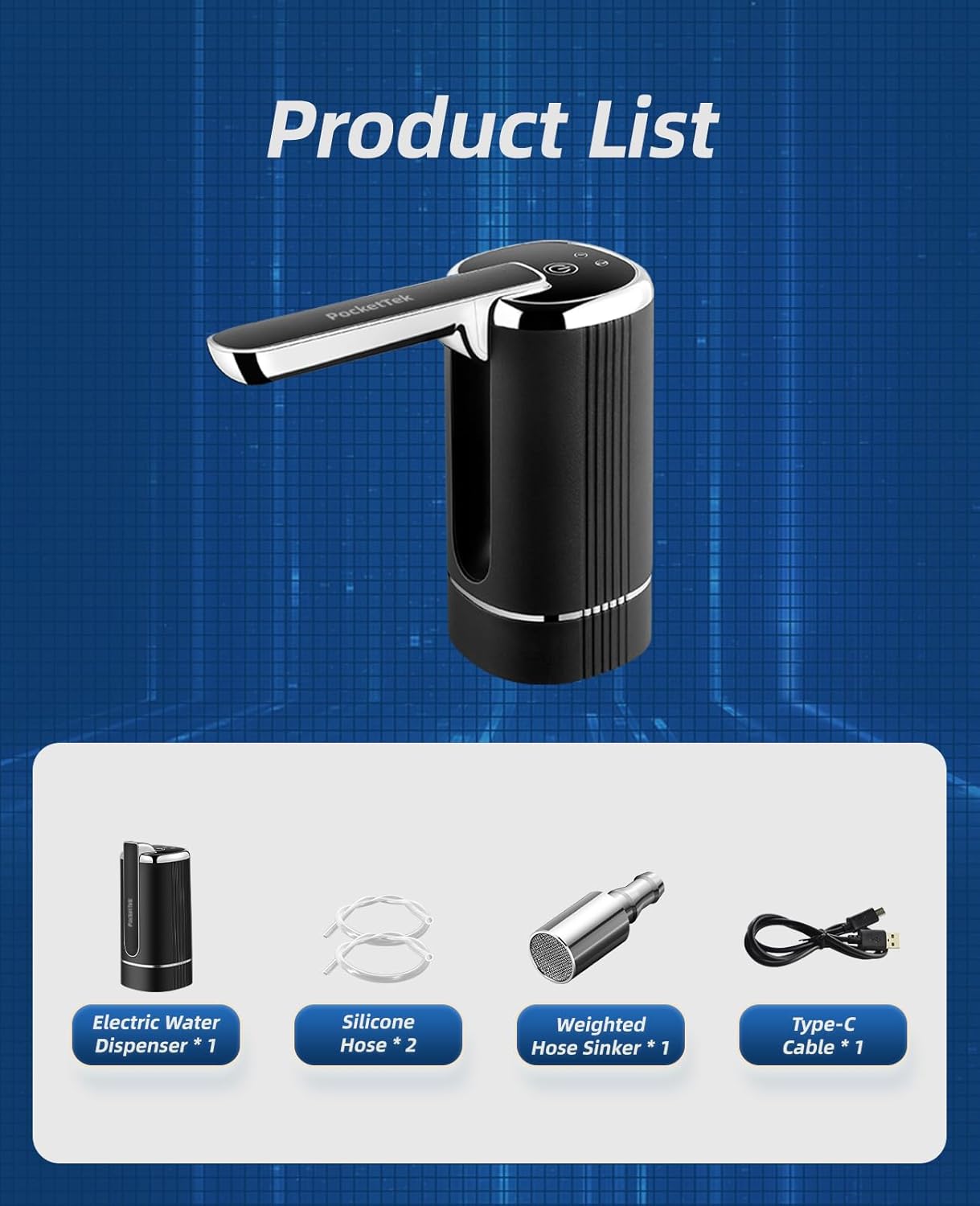 【Long-Lasting 1200mAh Battery】 30-40 Days per Charge – Powers 4-6 bottles (5-gallon each). USB-C Rechargeable (compatible with power banks, laptops, car chargers). Our electric water dispenser purchase includes a charging cable.The hose is made from food-grade materials, ensuring health safety, odor-free use, and worry-free operation.