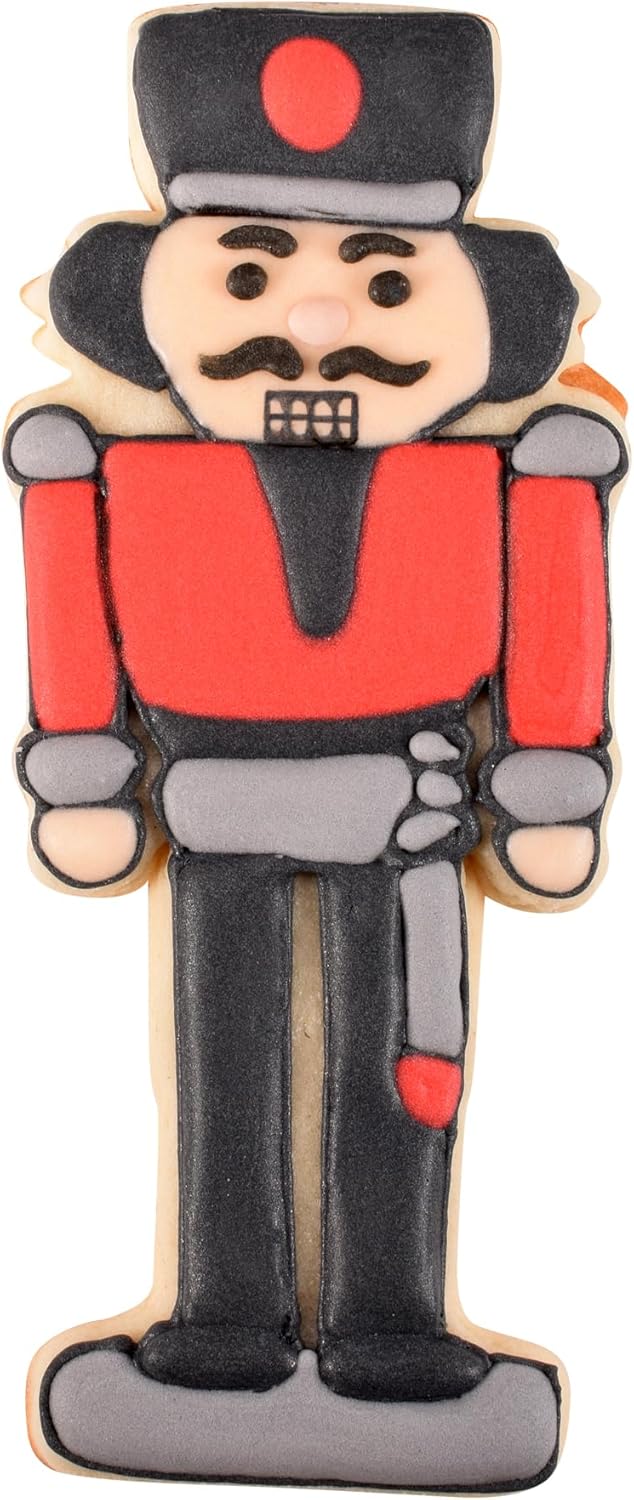 R&M Nutcracker Red Cookie Cutter 4″. Perfect for holiday baking, it creates precise shapes effortlessly. Durable and long-lasting, this cutter is easy to clean. Ideal for cookies, fondant, and craft clay. Add festive charm to your baked goods with this essential kitchen tool. Hand wash and dry thoroughly before storing to maintain its pristine condition.
