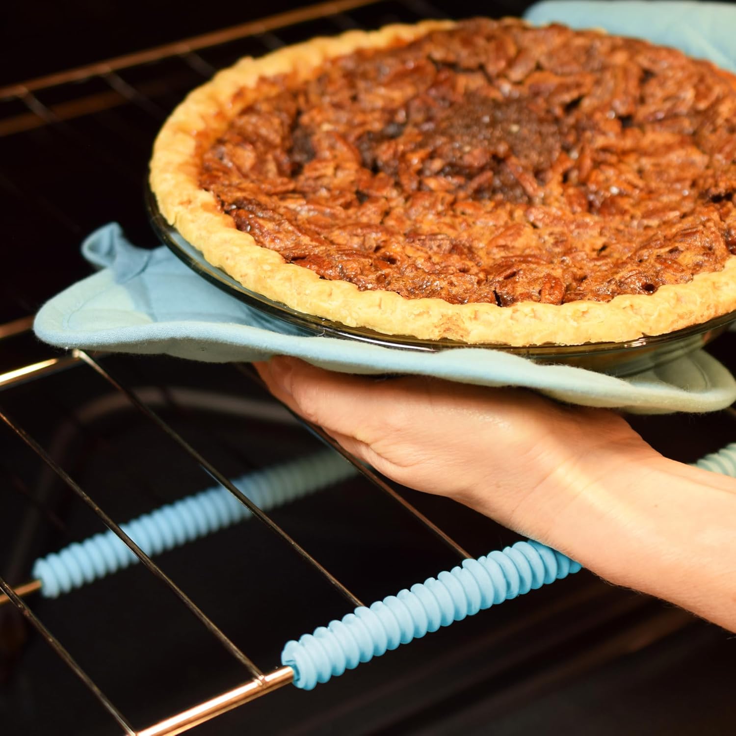 Easily protect your wrists and hands when using a hot oven.