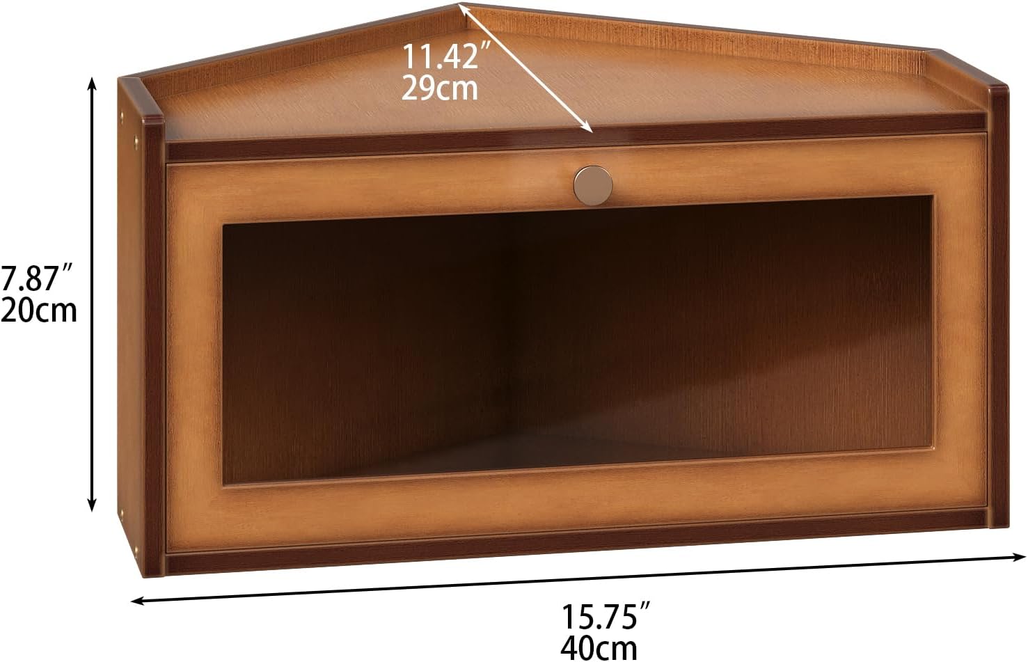 Spacious Storage: Measuring 15.75”L x 7.87”H x 11.42”D, this bread box offers plenty of room to hold bread, muffins, rolls, and more. The flat top and efficient corner design fit neatly into corners,maximizing your countertop space and leaving more room for your kitchen essentials