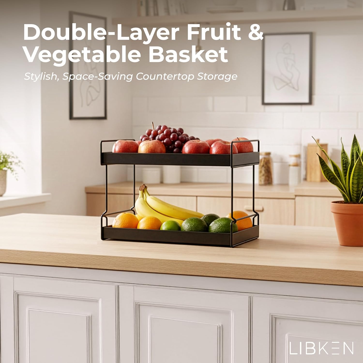 Versatile Double-Layer Storage: This 2-tier fruit basket is perfect for fruits, vegetables, bread, and snacks in the kitchen, or towels, bath products, and small items in living rooms and bathrooms