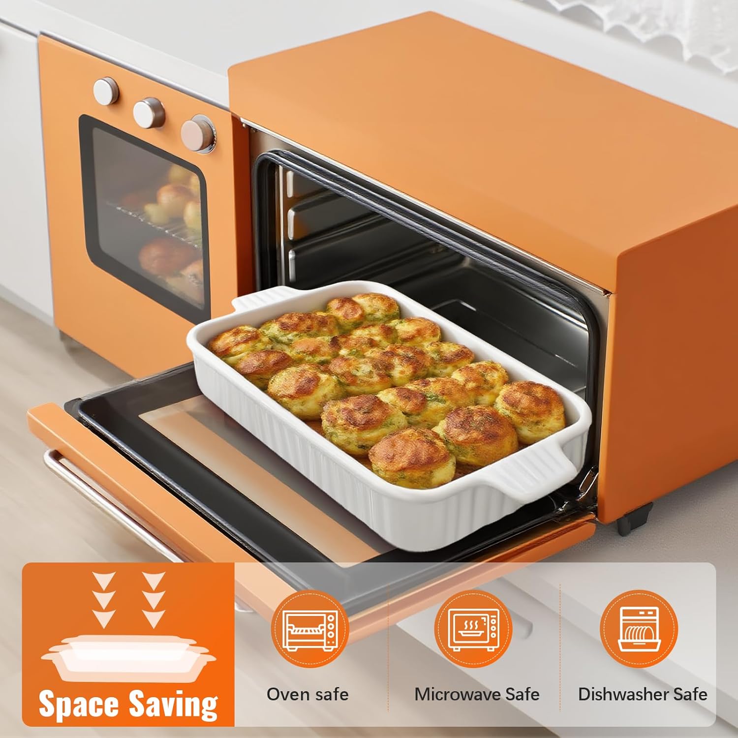 Sleek & Modern Design – Elegant white finish complements any kitchen or dining table, making it perfect for serving straight from oven to table