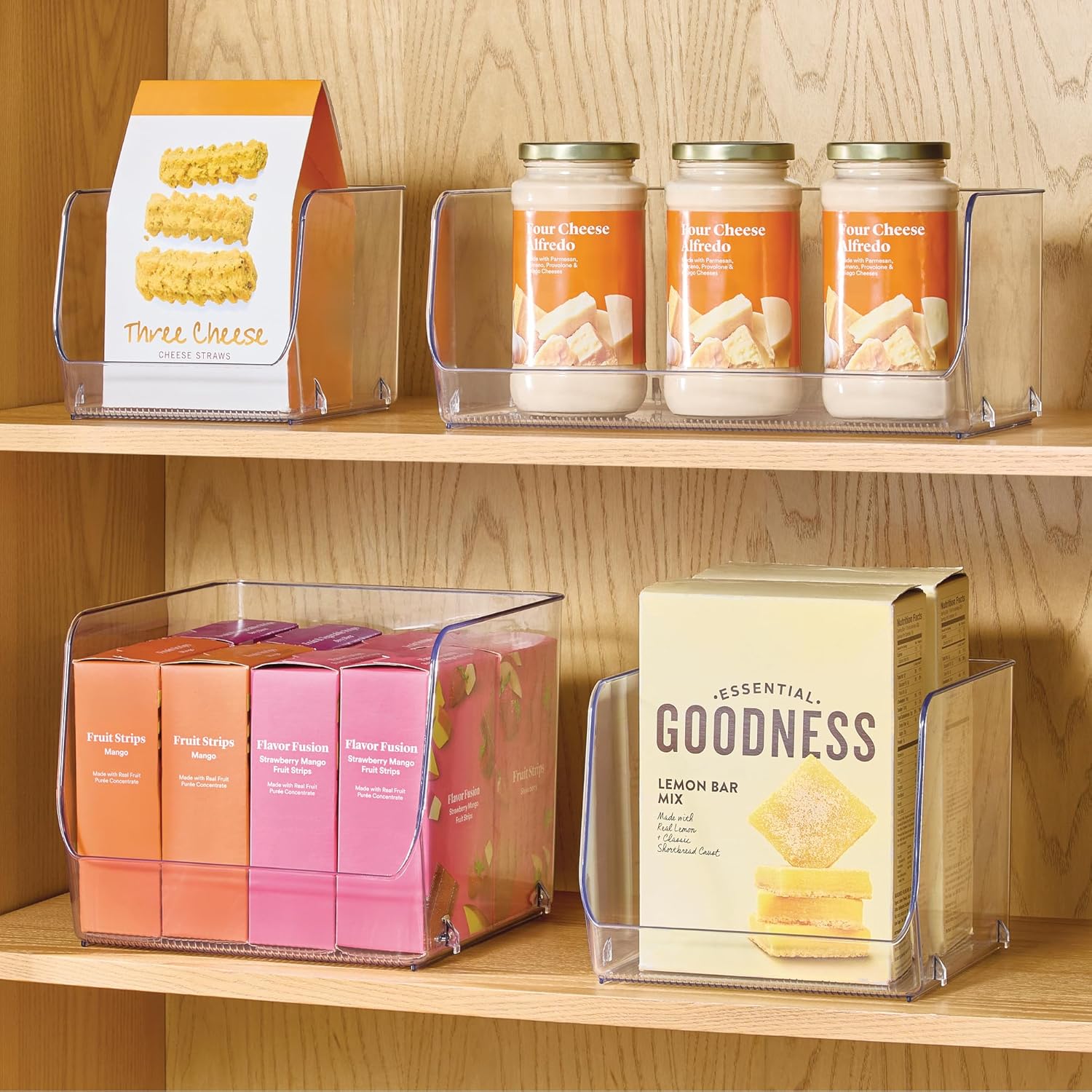 Set of 4 Clear Open-Front Storage Bins for Kitchen, Bath & Office