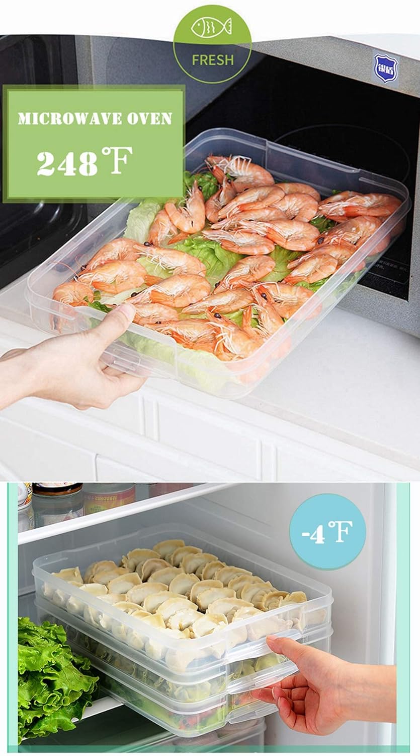 Rectangular、Not High: Flat、 Not too deep, Single tray height 1.5 in, Suitable for layered storage of sliced cheese meat、 shrimp、 salmon、 ham slices、 deli、 steak、 patties、 asparagus、 celery、 leeks、 mushrooms、 berries、 cherries、 fruit pieces、 burrito、 pizza、 egg rolls、 etc. in the fridge