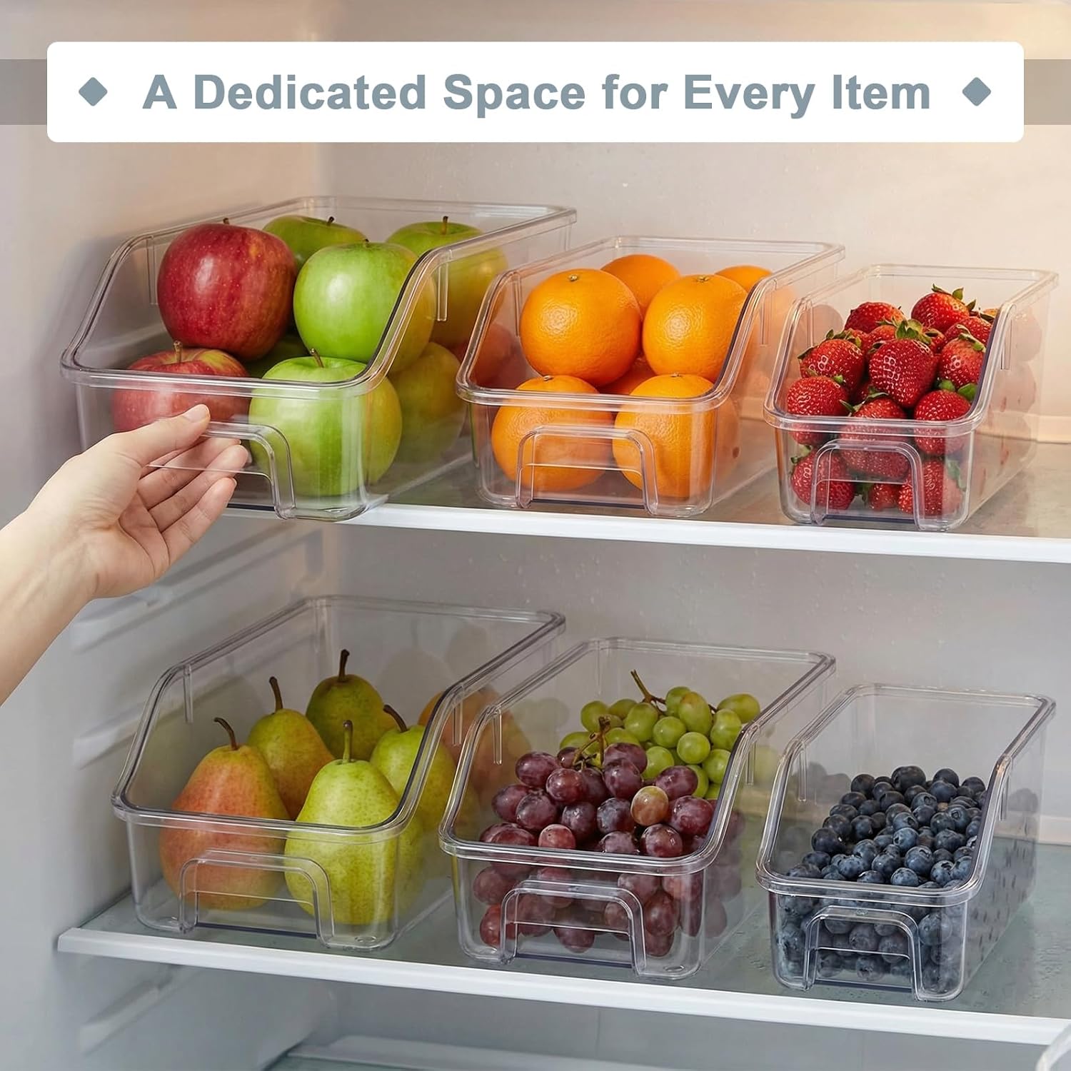 Value Refrigerator Organizer Set: this storage bin set includes 6 organizers in three different sizes: 12.6 x 7.6 x 4.8 inches, 11.4 x 4.5 x 4.5 inches, and 10.2 x 4.4 x 4.1 inches; Keep your kitchen, refrigerator, pantry, and other spaces organized with our open front organizers—easily categorize food and supplies by purpose, size, or type