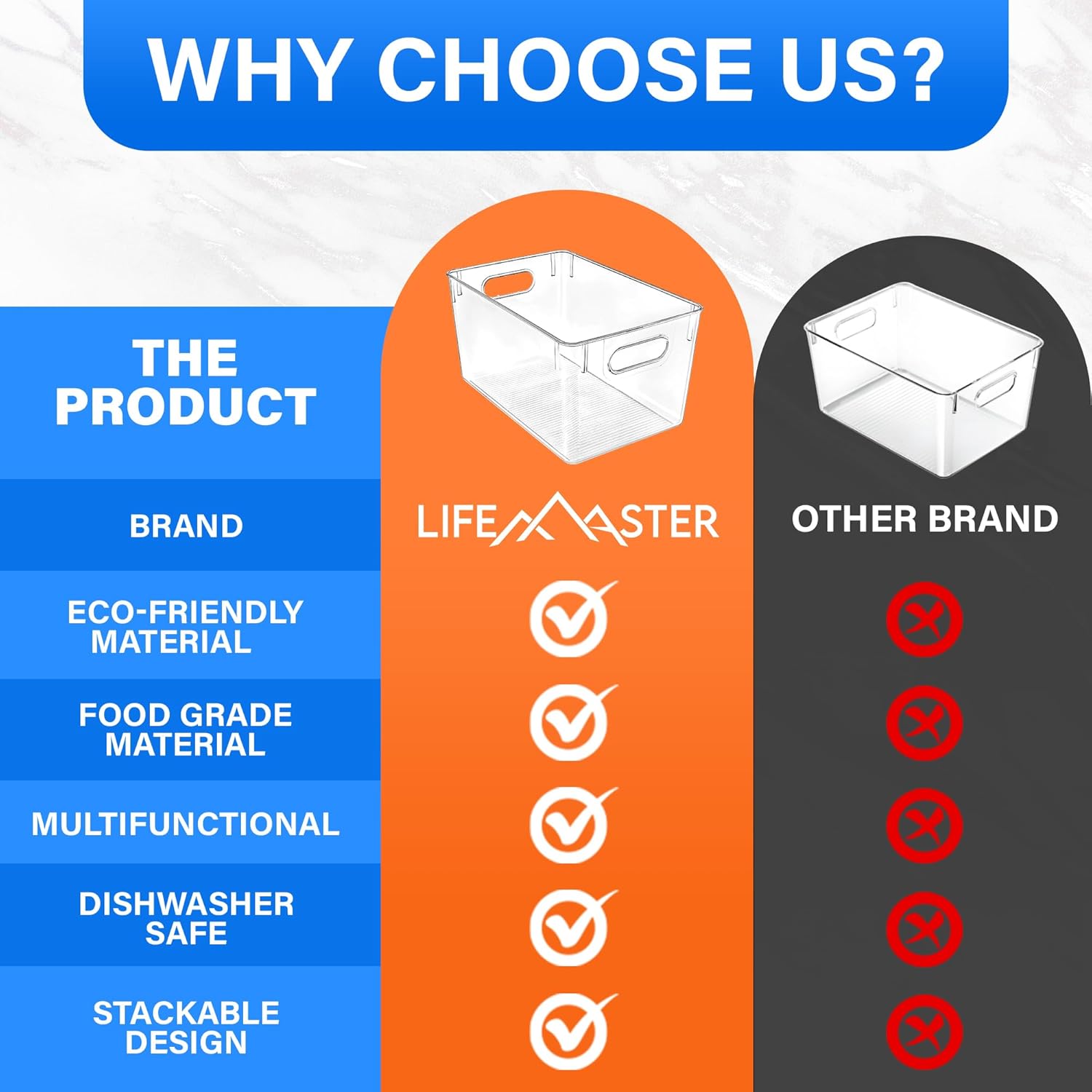 MAXIMIZE STORAGE SPACE: These large capacity bins are designed to maximize your fridge, kitchen cabinet, pantry, or countertop space, helping you keep your items neatly organized and easily accessible.