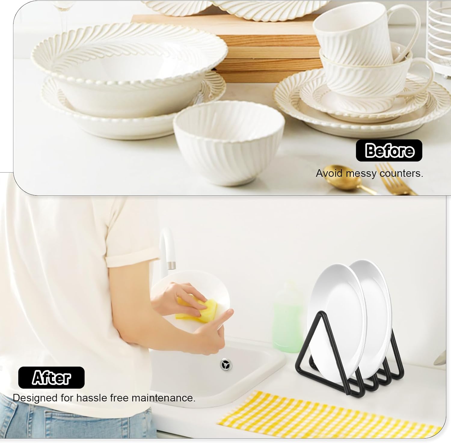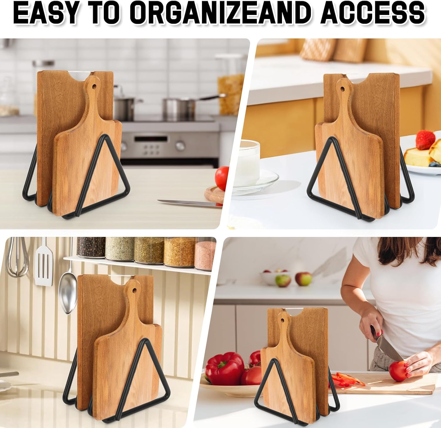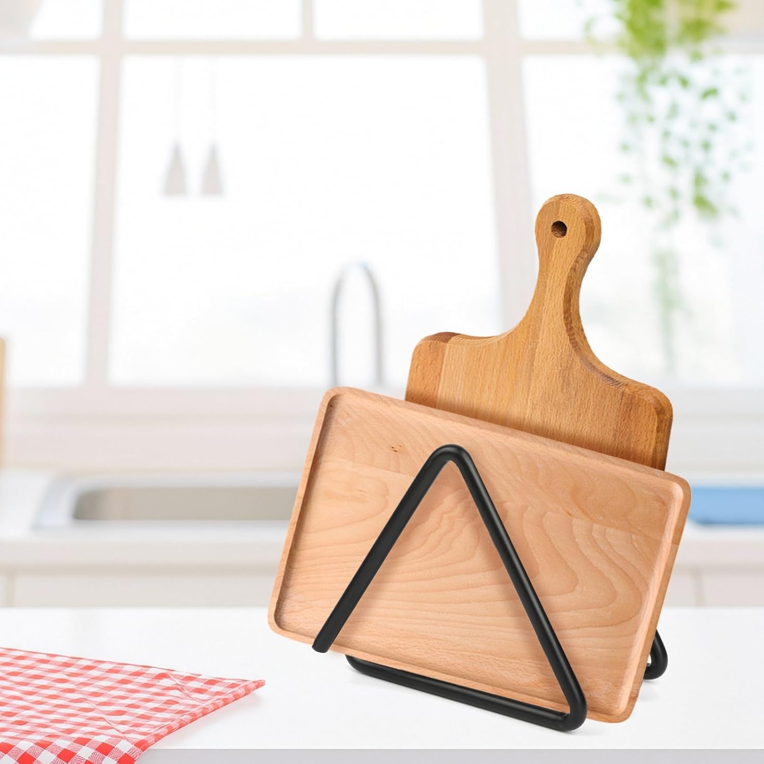 Durable Metal Material: Made of black metal, the material is sturdy and not easy to deform, with a smooth surface that is easy to care for. It can bear the weight of cutting boards for a long time, suitable for use in humid kitchen environments, combining practicality and decorativeness, and fitting various kitchen styles.
