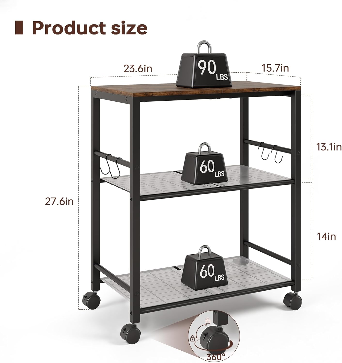 Practical Design: Equipped with four smooth-rolling casters (two locking wheels), this three-tier kitchen island on wheels moves effortlessly and stays securely in place when needed. The side S-hooks are perfect for hanging cooking utensils and towels.