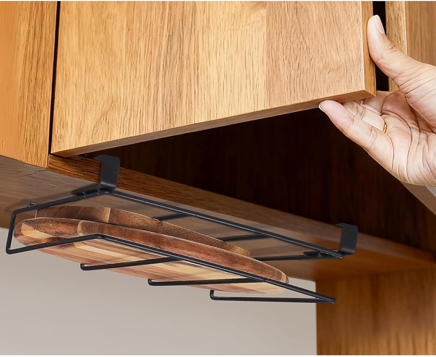 🚀 Save Kitchen Space: This metal cutting board holder tucks neatly under the cabinet, providing dedicated storage for chopping boards, pot lids, baking sheets, and more. The profile saves precious space while keeping essentials within easy reach.