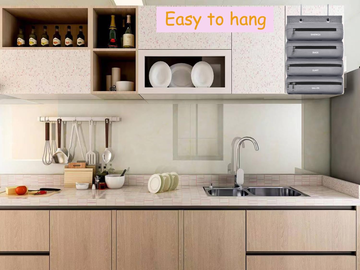 Bag Storage Organizer for Kitchen, Food Storage Bag, Compatible with Bag Organizer in Gallon, Quart, Sandwich & Snack Size Bags Plastic Bags Kitchen Holder